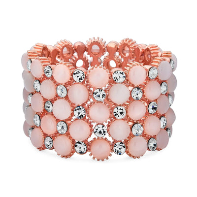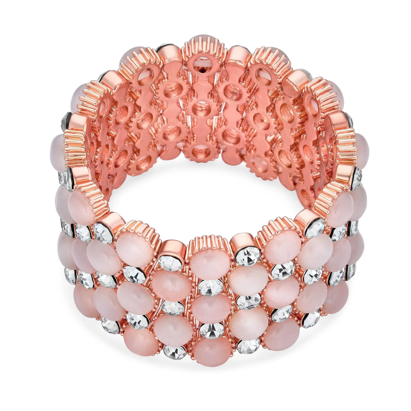 - For a stunning feminine touch to your style to enhance your wedding or formal ensemble, choose this exquisite stretch bracelet. Featuring an ethereal color pallet of rose blush pink tones with, simulated cats eye and sparkling crystal embellishment.
