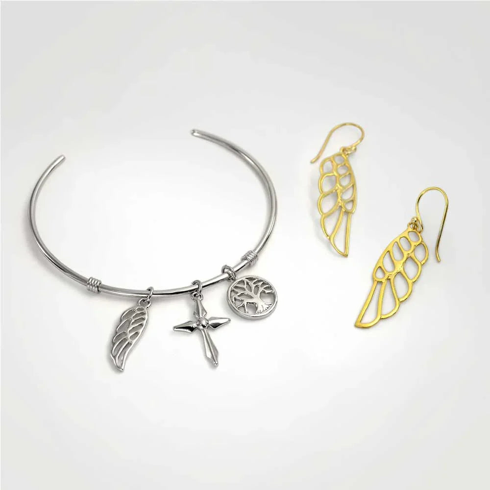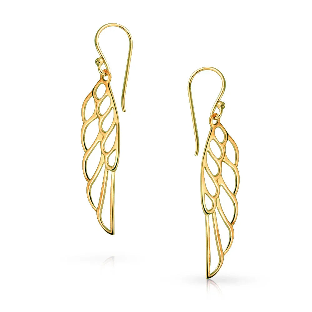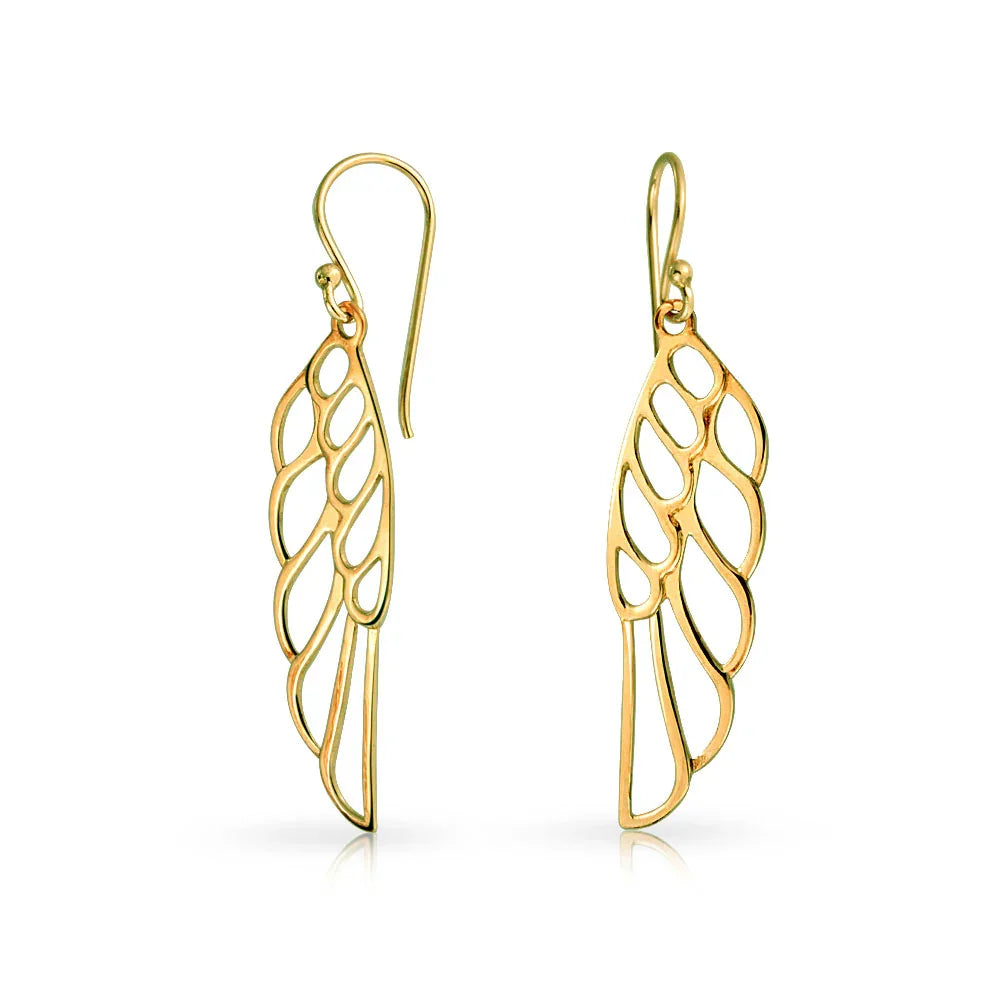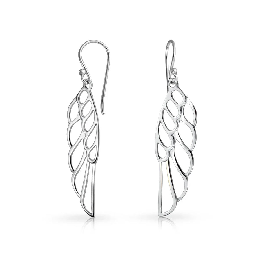 - Show your love and protection with these guardian angel wing ear earrings, a beautiful reminder that you are always watching over someone special. Elevate your style with these stunning dangle earrings featuring a mesmerizing cut-out wing design inspired by celestial beauty.