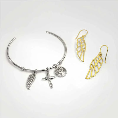 - Angel wing earrings symbolize protection, purity, courage, love, and harmony, bringing happiness, hope, and faith. Versatile enough to complement any outfit, from casual jeans to an elegant black dress, they make an ideal gift for any occasion.