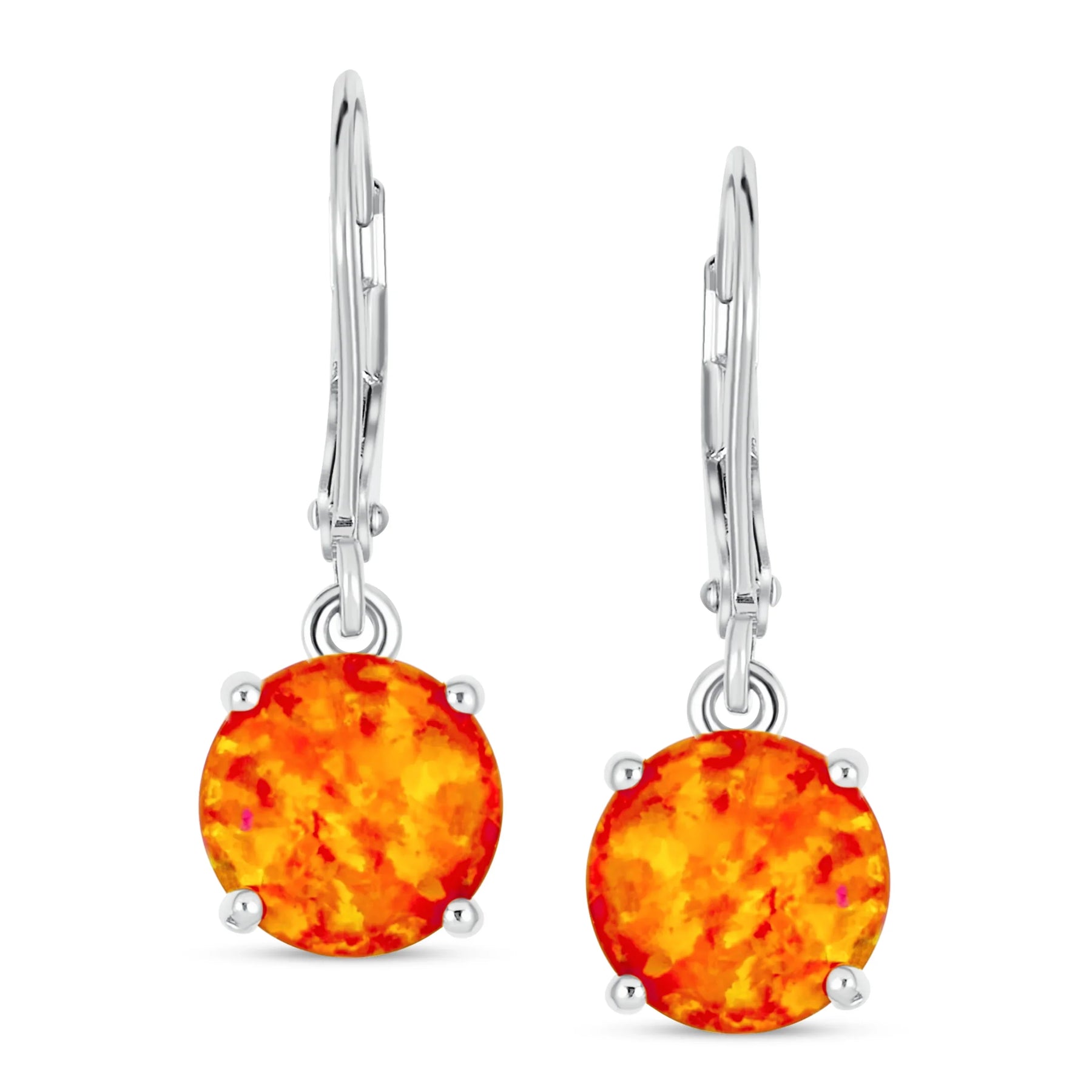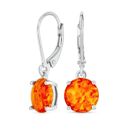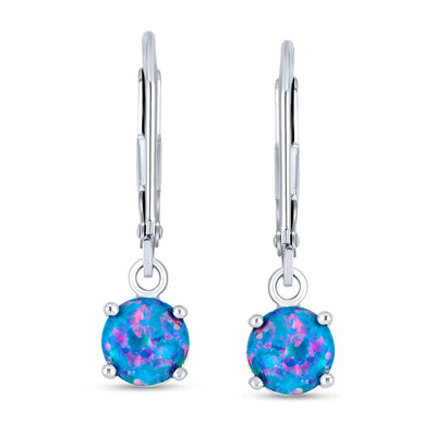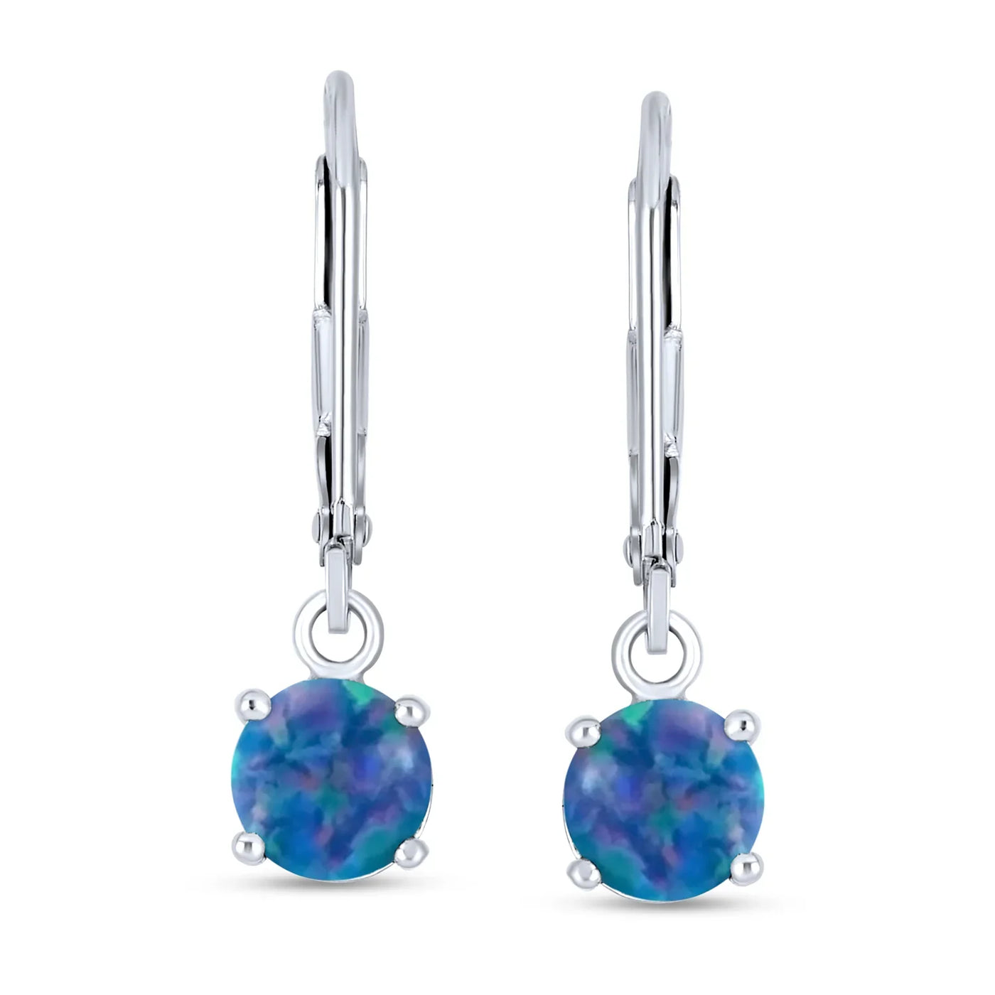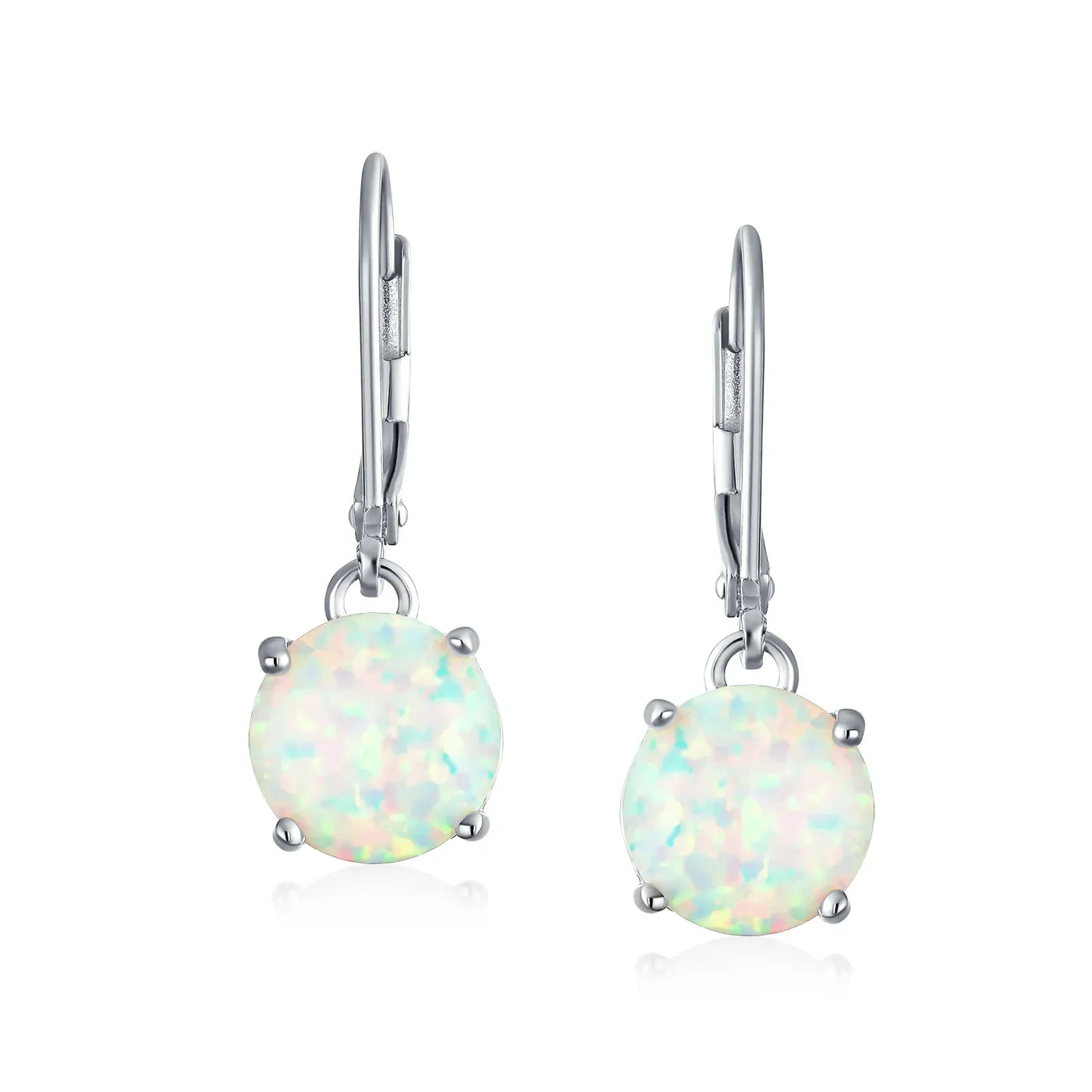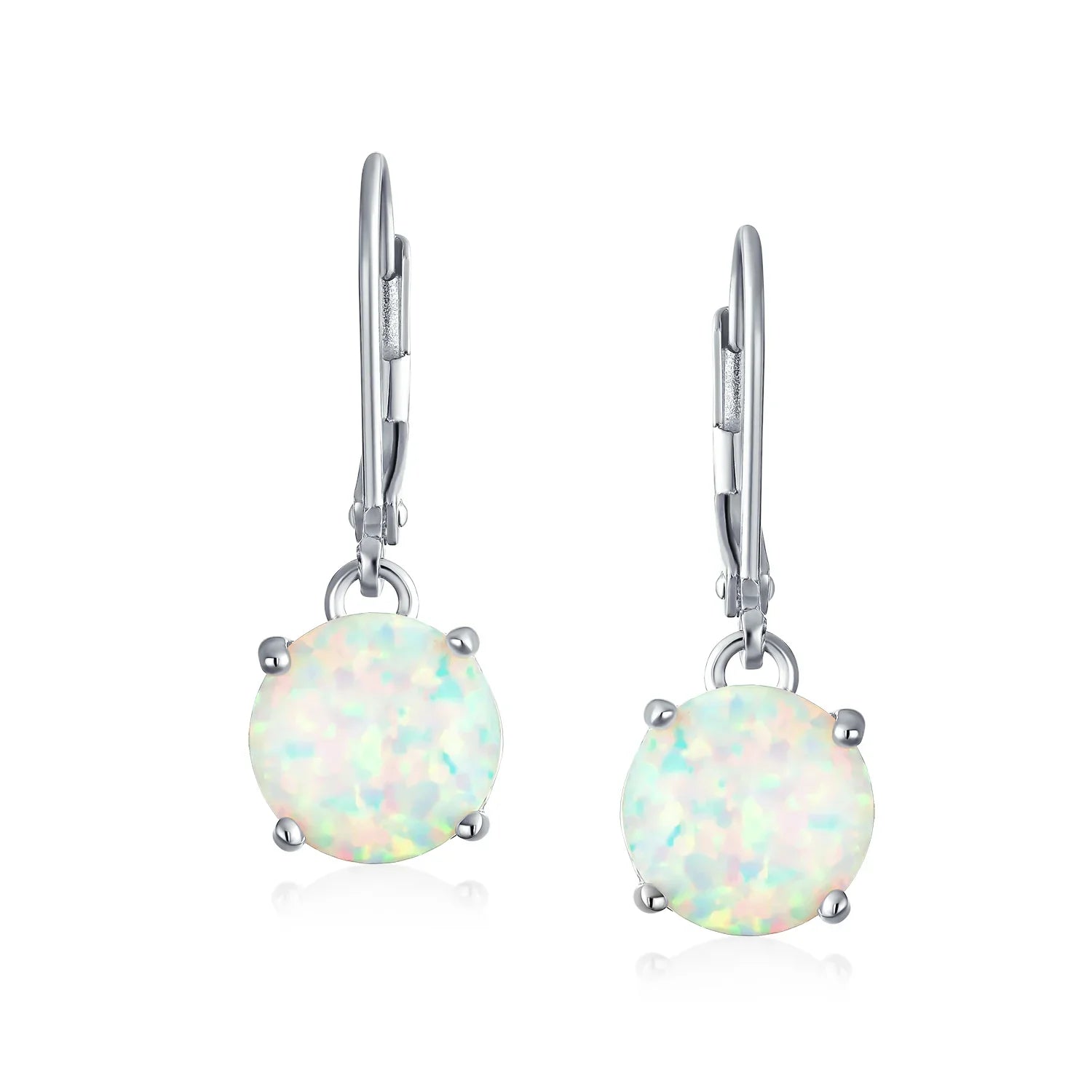 - Stay sparkling on your wedding day with our gorgeous Created opal earrings. These sterling silver earrings are made of polished silver and round cut white, Created blue opal, or Created black opal stones that glitter in an array of vibrant and pretty shades. With their simple yet stylish design, our gemstone jewelry looks perfect with any style gown, whether you go for vintage or modern. If not shopping for your big day, this Created opal jewelry is perfect birthstone jewelry for all of the October . Get oh so gorgeous with our silver dangle earrings.