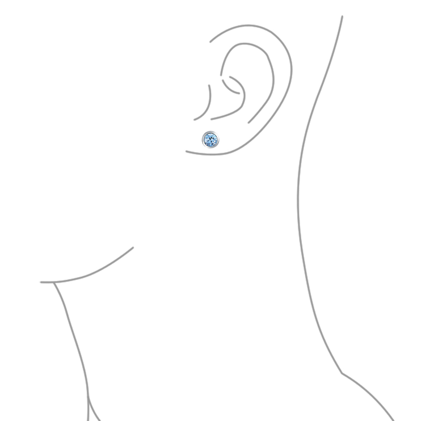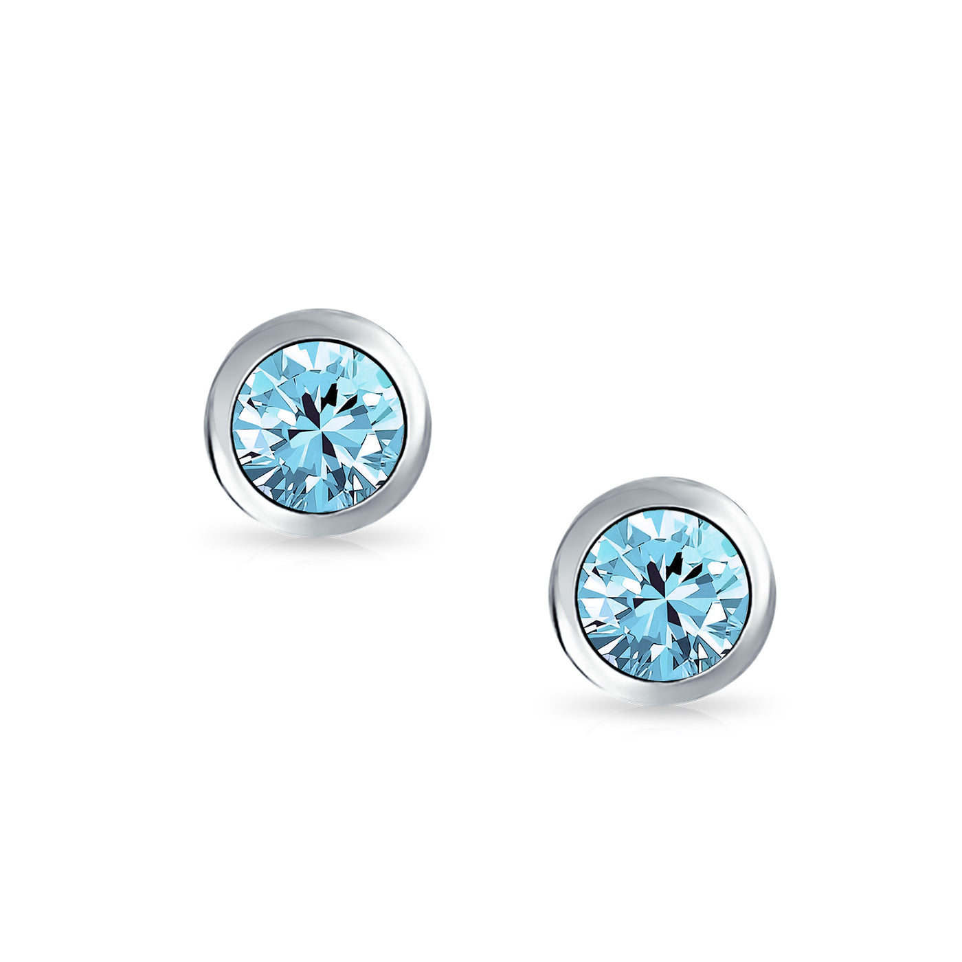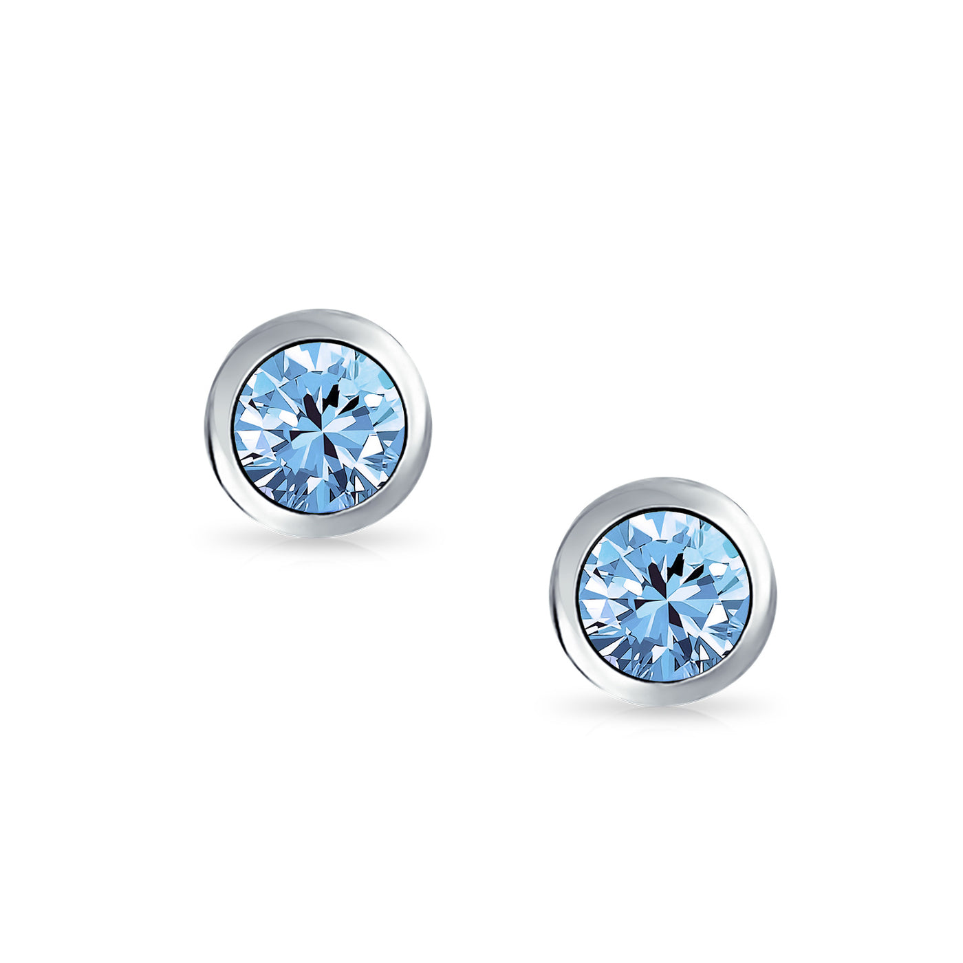 - ELEGANT DESIGN - These sterling silver round studs showcase a captivating bezel-set simulated blue topaz CZ, adding sophistication to any ensemble. At just 6mm in diameter, they offer a chic, understated style. Rhodium plating provides enduring brilliance, making them an ideal gift for December birthdays with pierced ears.