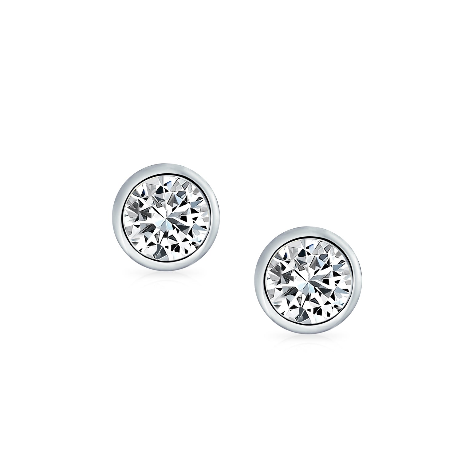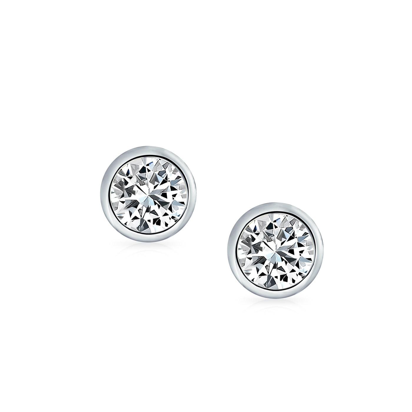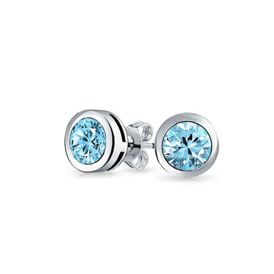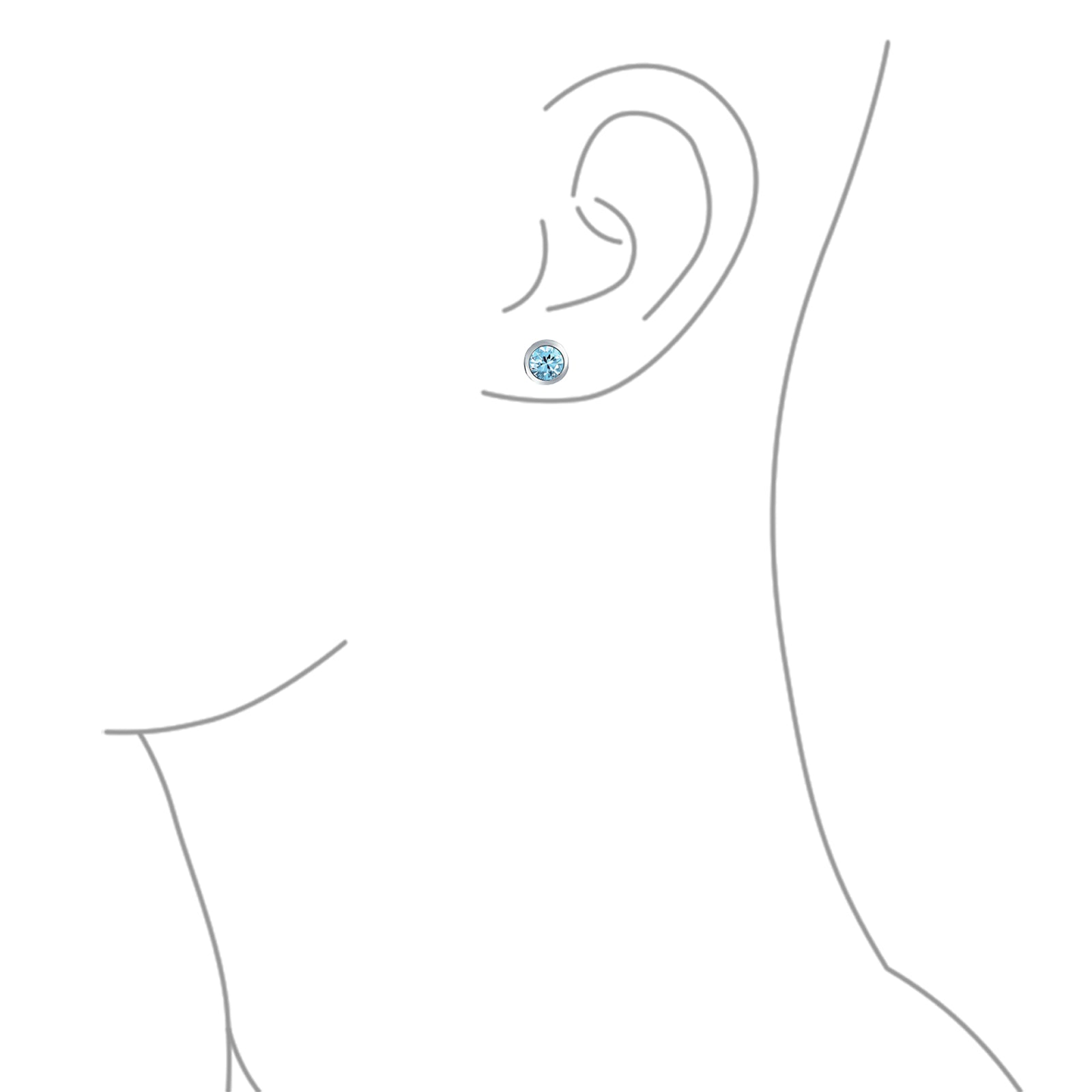 - ELEGANT DESIGN - These sterling silver round studs showcase a captivating bezel-set simulated blue topaz CZ, adding sophistication to any ensemble. At just 6mm in diameter, they offer a chic, understated style. Rhodium plating provides enduring brilliance, making them an ideal gift for December birthdays with pierced ears.
