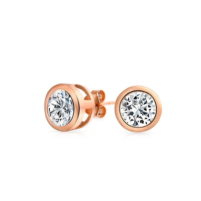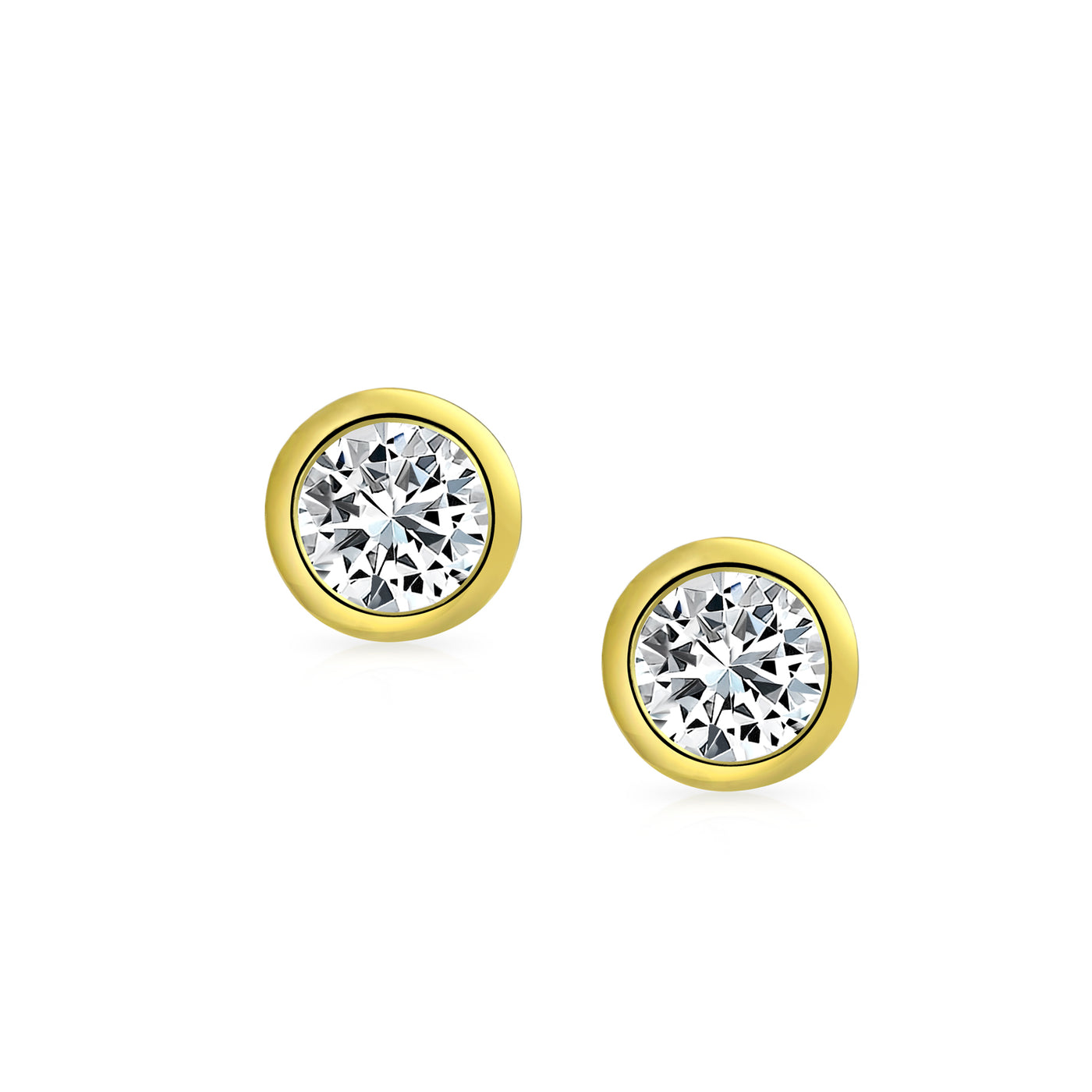 - Introducing our stunning bezel stud earrings, crafted with utmost precision from high-quality .925 sterling silver and elegantly gold plated for an exquisite touch. These earrings are designed to captivate, featuring clear round cz stones delicately set in a bezel setting. They effortlessly enhance any ensemble in your wardrobe, adding just the right amount of sparkle to make you stand out. Perfect for gifting, these chic and glamorous studs are sure to impress anyone on your list. Elevate your style with these timeless and versatile earrings.