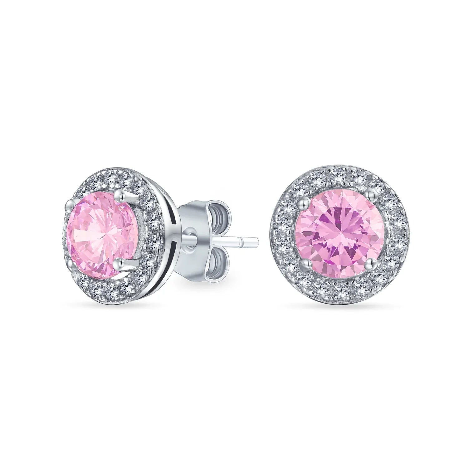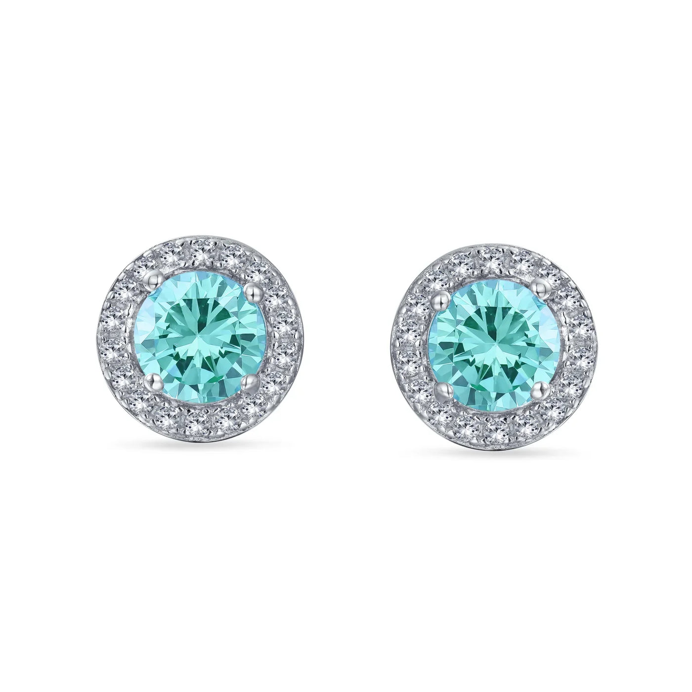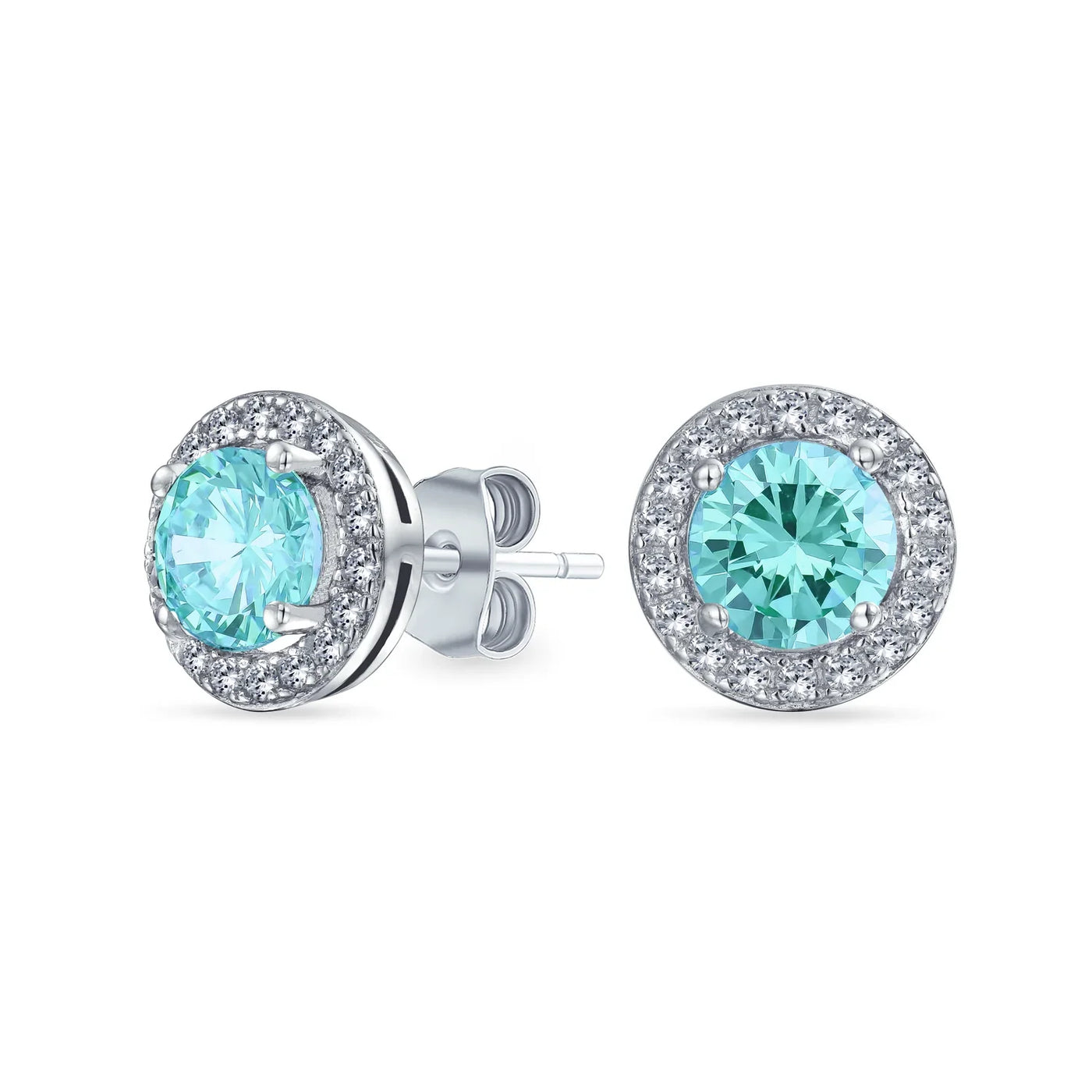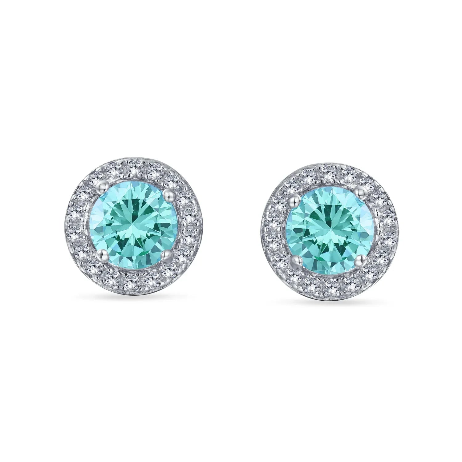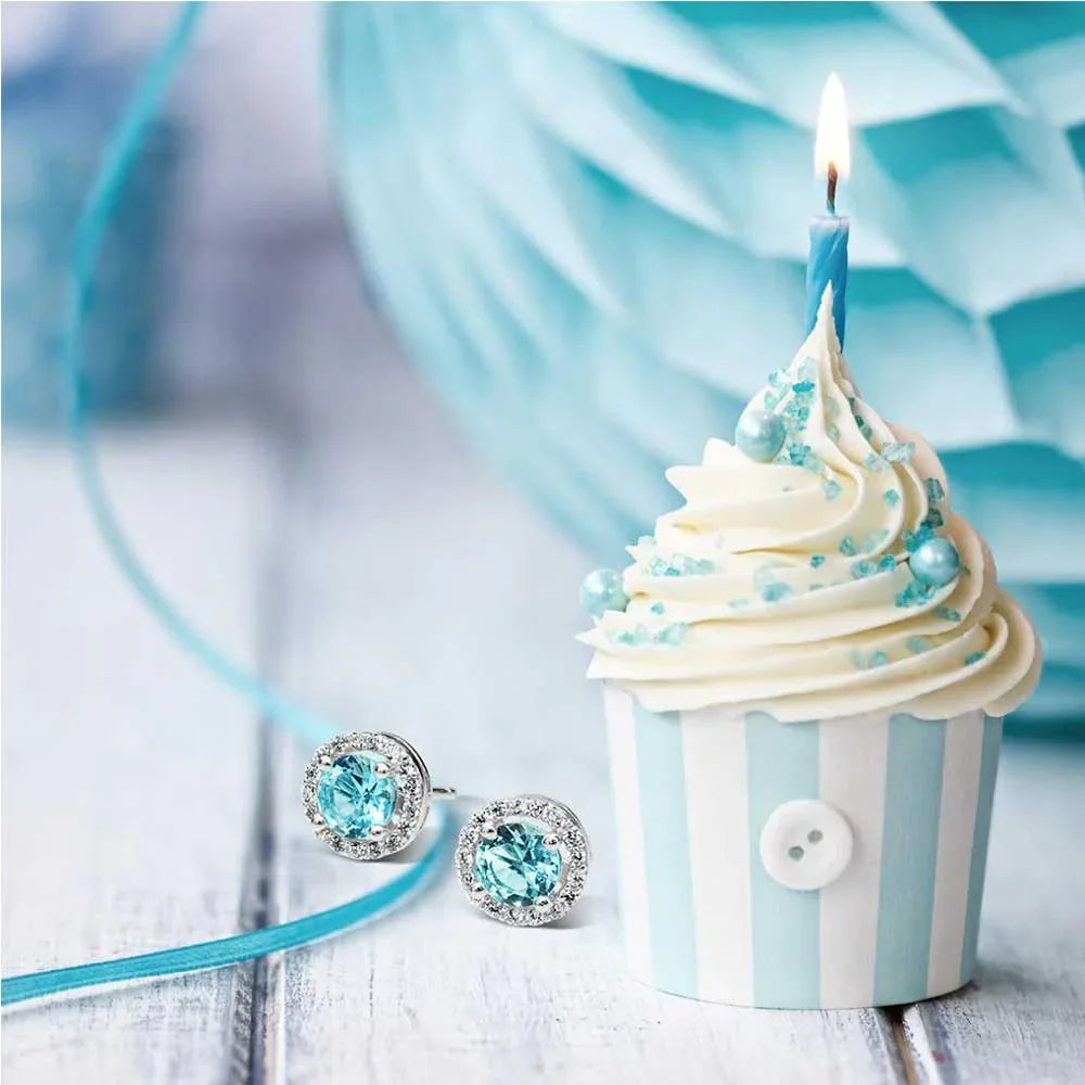 - Petite yet radiant, these cubic zirconia earrings brighten any earlobe. Rhodium plated sterling silver with colored and clear cz stones. Perfect birthstone earrings for March, May, or October. Ideal bridesmaid gifts. Sparkle on!