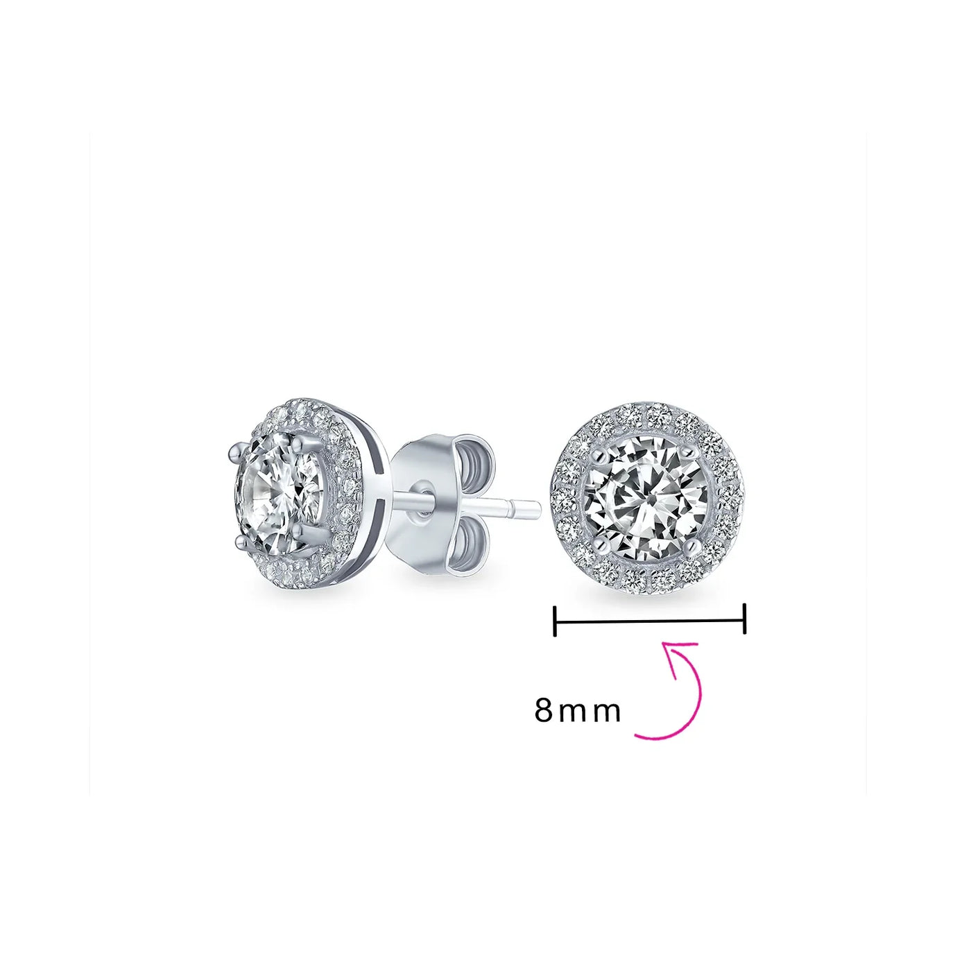 - Measure: 8 MM L x 8 MM W, Weight: 1.5 Gram, Material: .925 Sterling Silver, Rhodium Plating, Cubic Zirconia