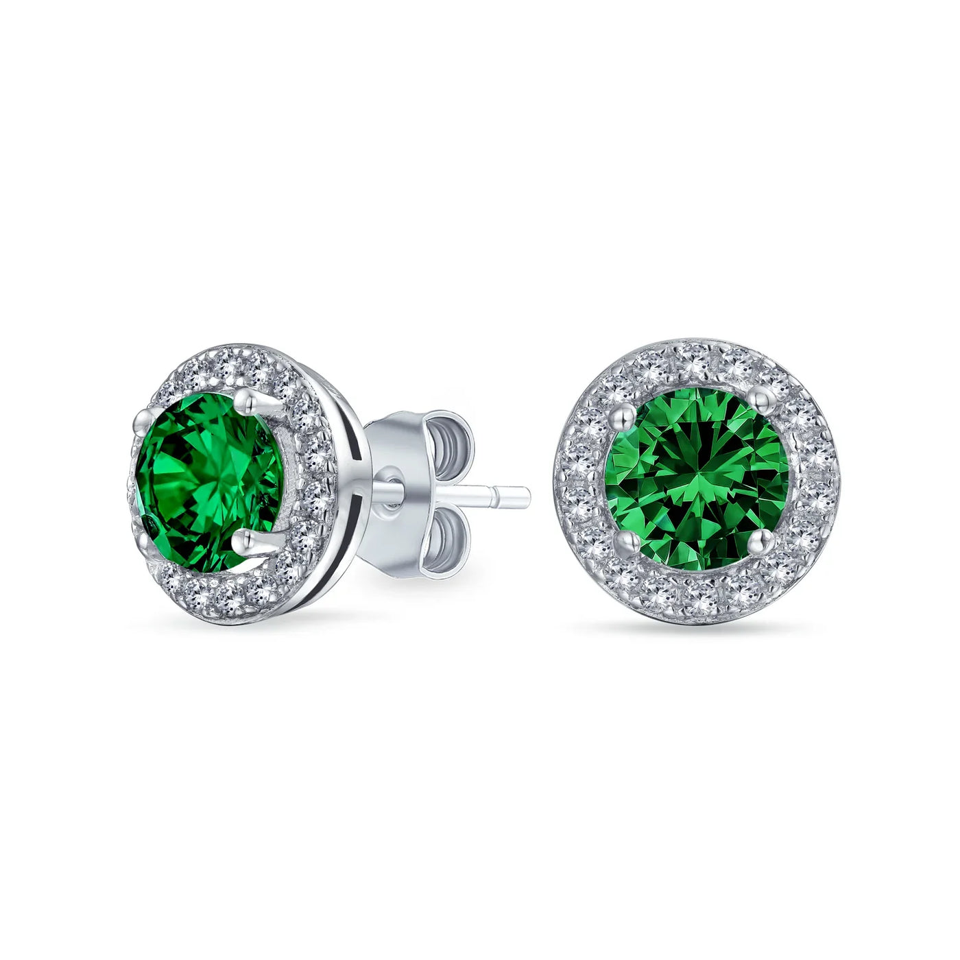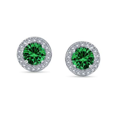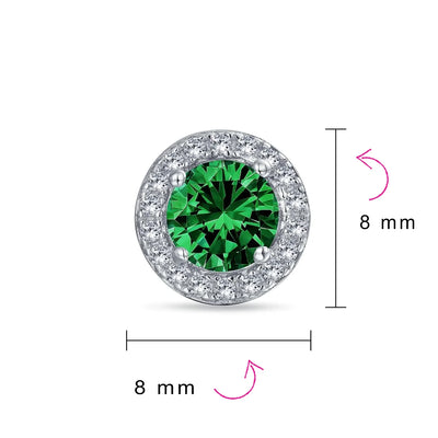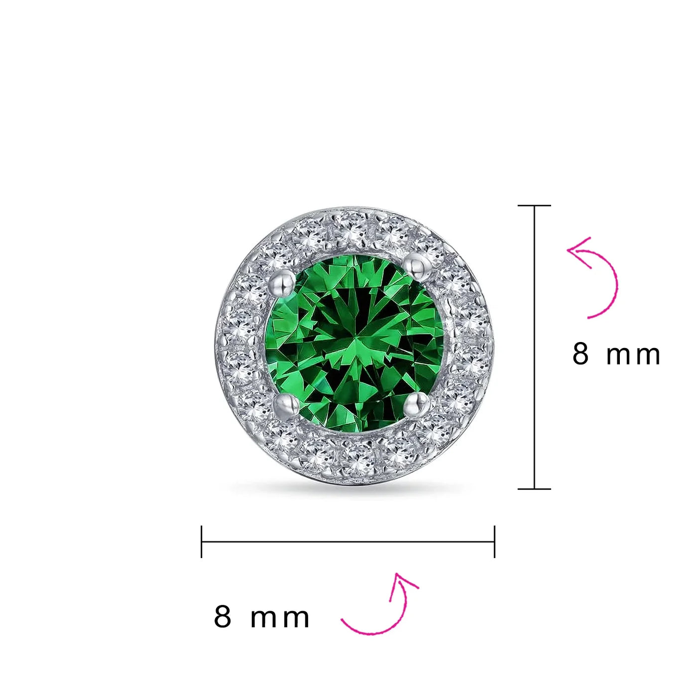 - ELEGANT DESIGN - Perfect for May birthdays or anyone who loves the look, our 8mm circular simulated Emerald May Birthstone earrings in .925 Sterling Silver add a touch of glamour to any outfit. Ideal as a gift for those with pierced ears.