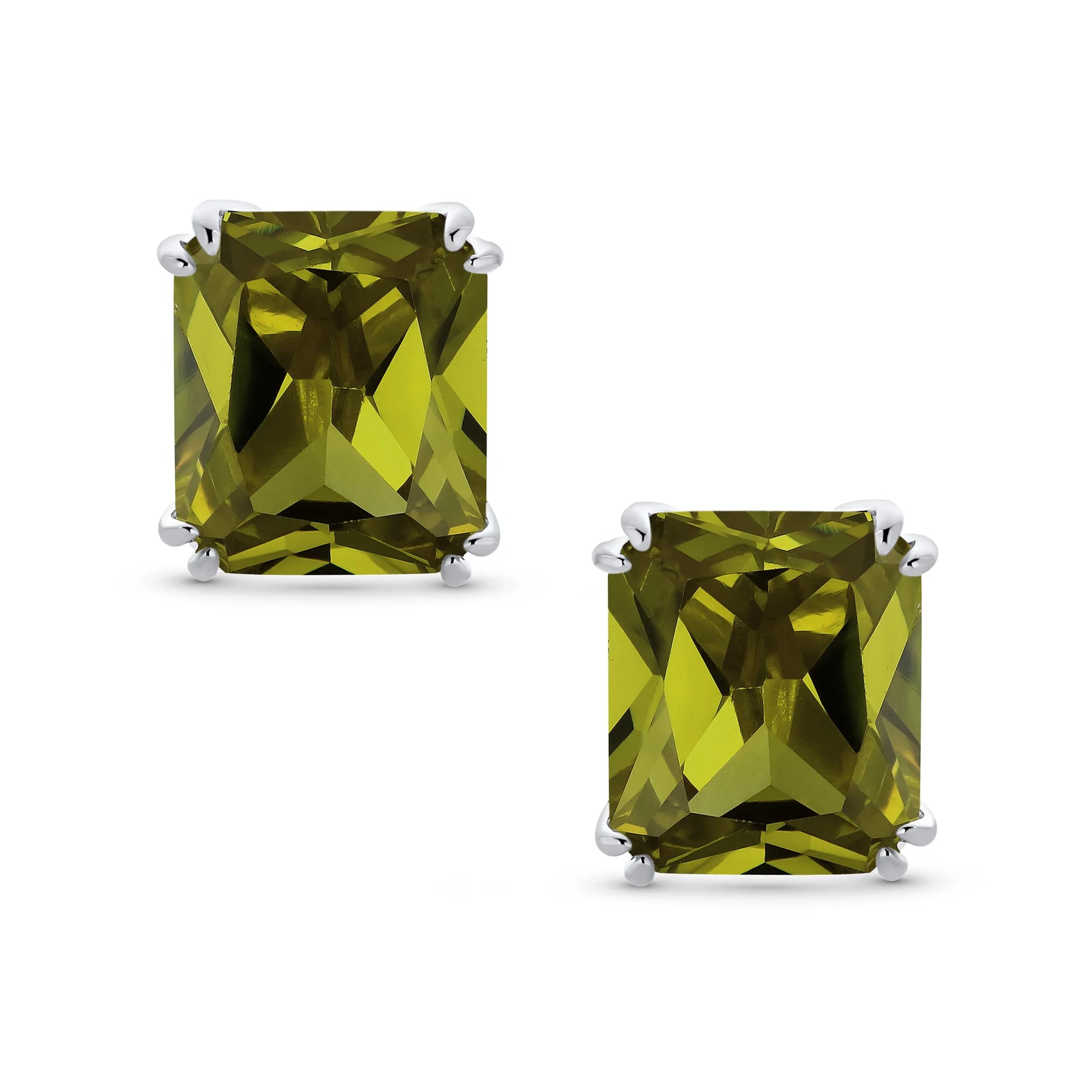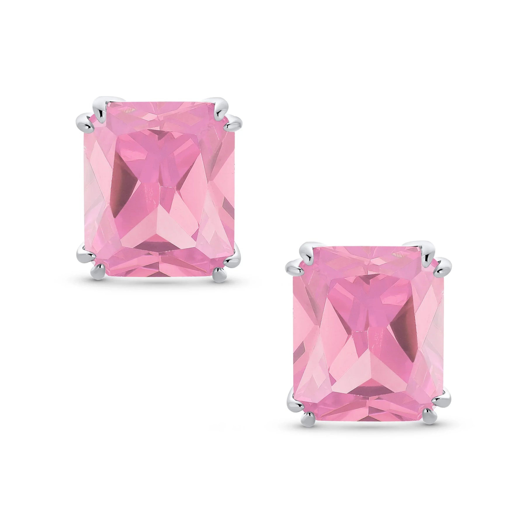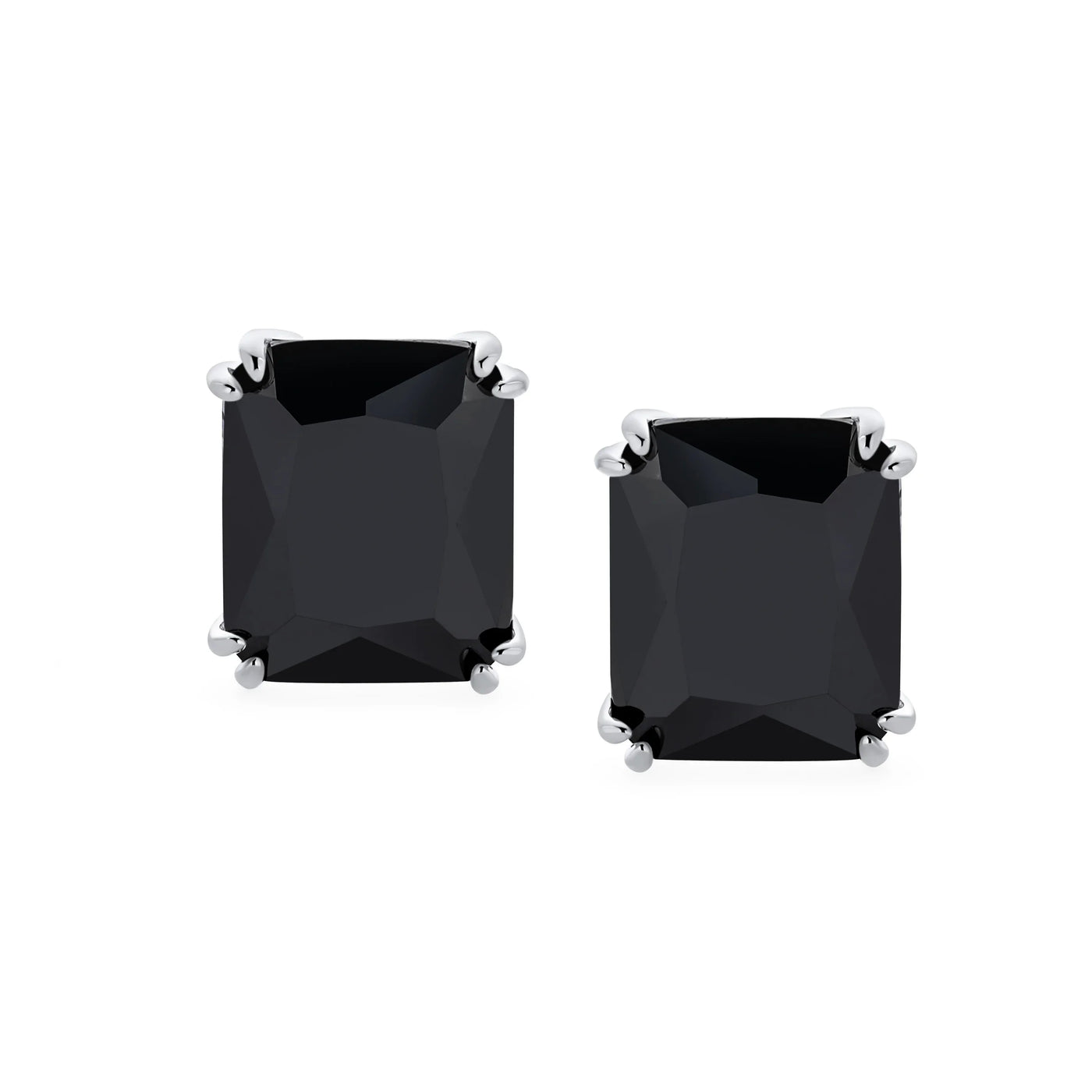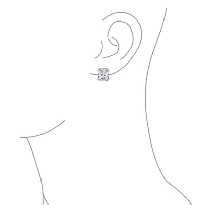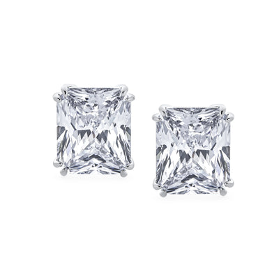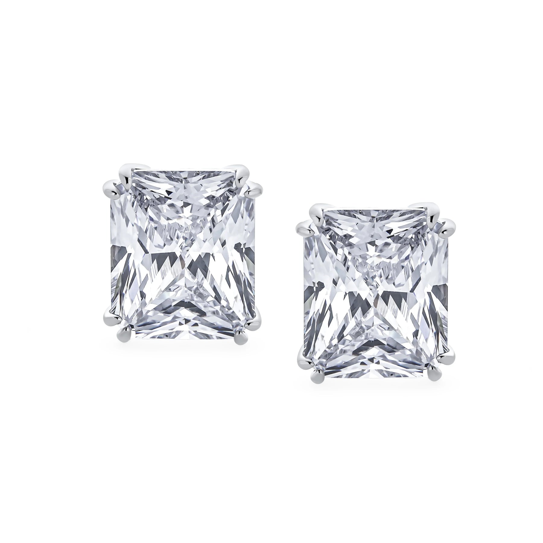- Our rectangle solitaire clip on earrings are a great choice for the jewelry lover who does not have pierced ears. Featuring an 14mm cubic zirconia clear stone secured by a four prong setting, these clip on stud earrings will look great on you. Made out of silver plating these cz bridal studs attach to your ear comfortably and fashionably. These rectangle cz earrings are rhodium plated so they will remain shiny for years to come. Be prepared to receive compliments when you don this pair of cz stud earrings for women.