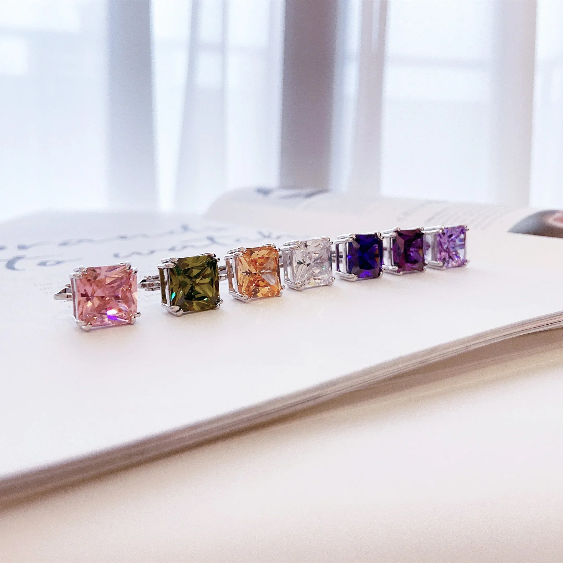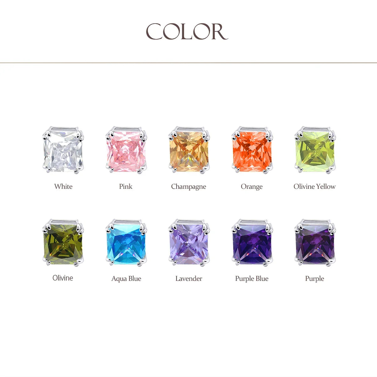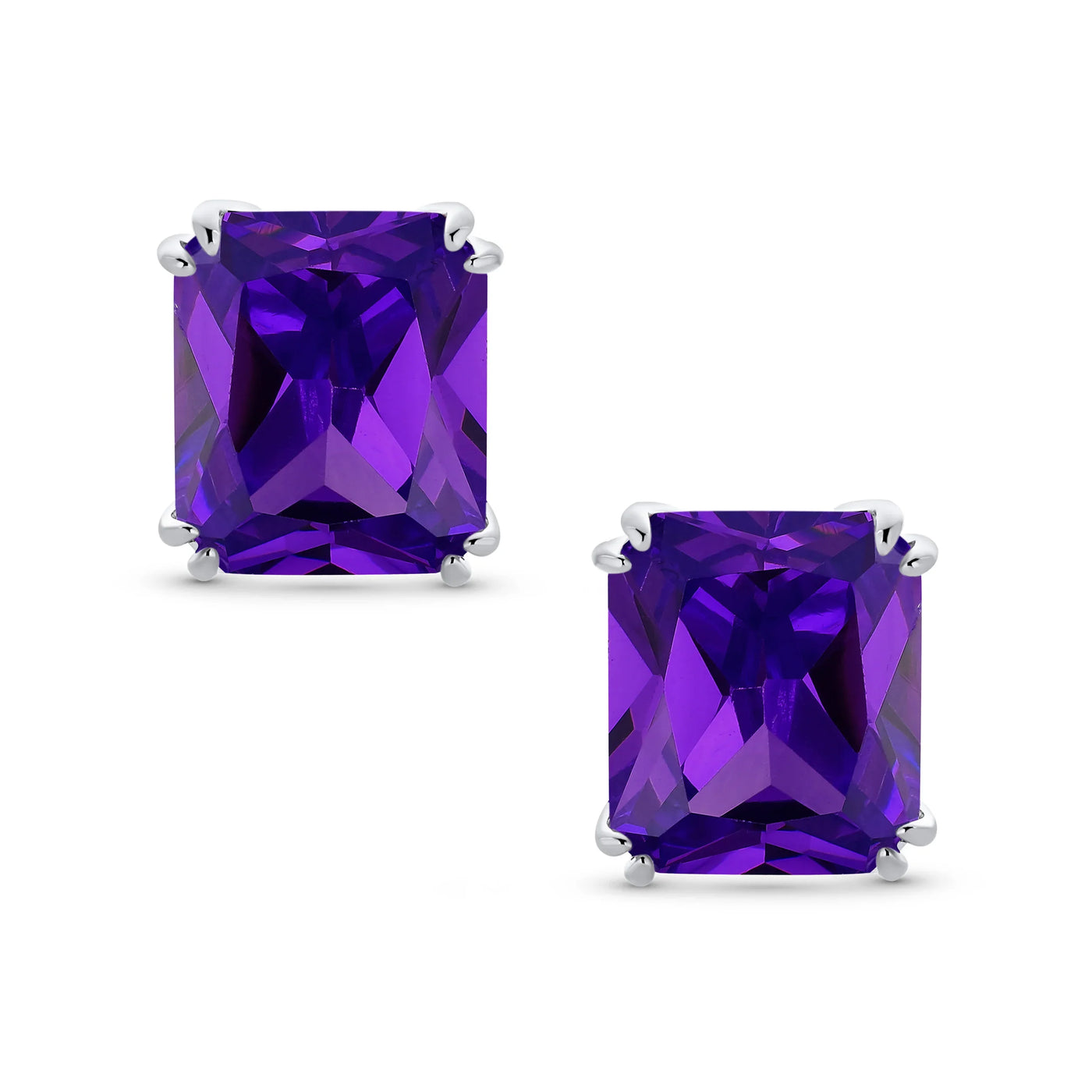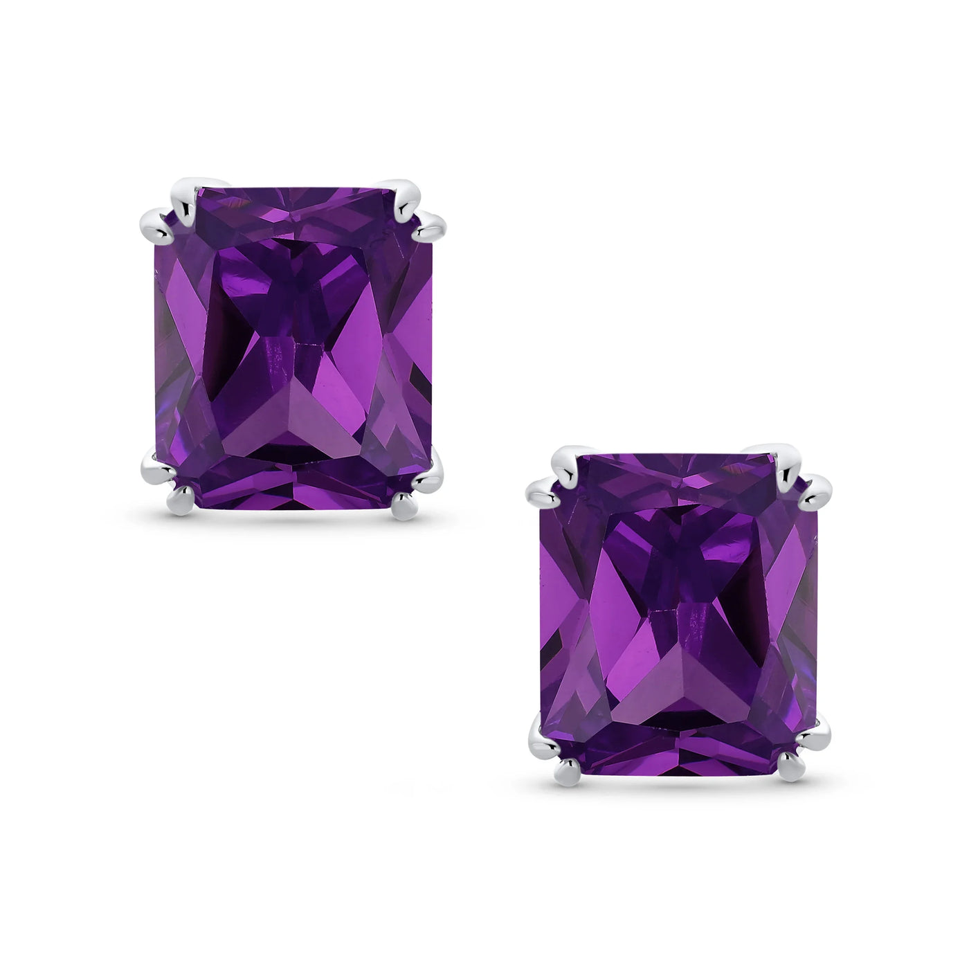 - Our rectangle solitaire clip on earrings are a great choice for the jewelry lover who does not have pierced ears. Featuring an 14mm cubic zirconia clear stone secured by a four prong setting, these clip on stud earrings will look great on you. Made out of silver plating these cz bridal studs attach to your ear comfortably and fashionably. These rectangle cz earrings are rhodium plated so they will remain shiny for years to come. Be prepared to receive compliments when you don this pair of cz stud earrings for women.