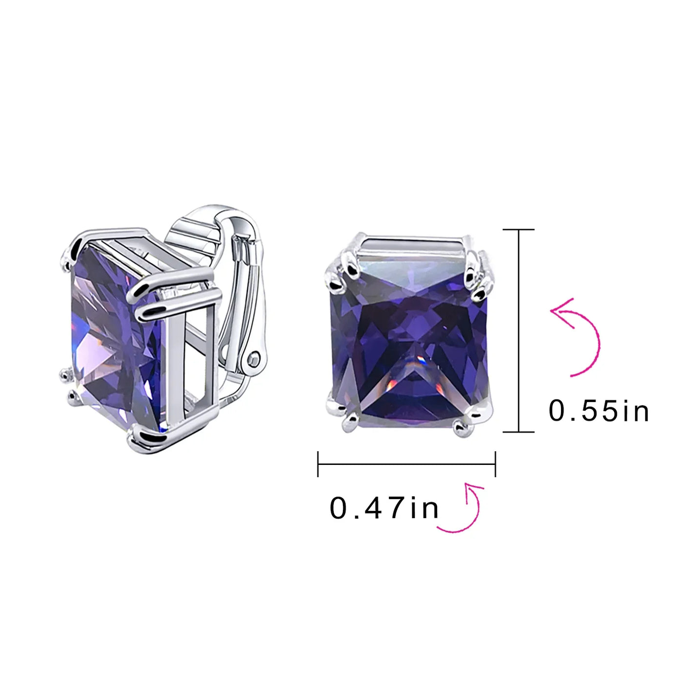 - BOLD DESIGN - These Huge 10Ct each studs earrings for non pierced are the perfect gift to anyone who loves earrings but doesnt have a piercings. These clip on have a beautiful big sparkling 12x 14mm cz stone in many birthstone colors making them a great gift for any special occasion.
