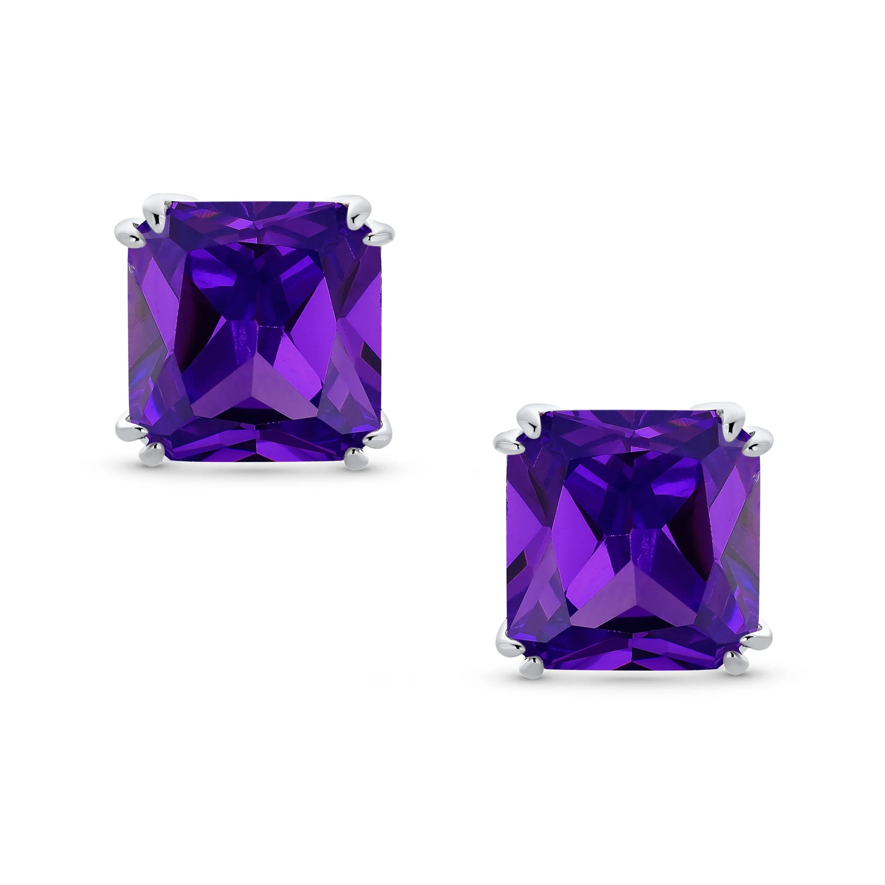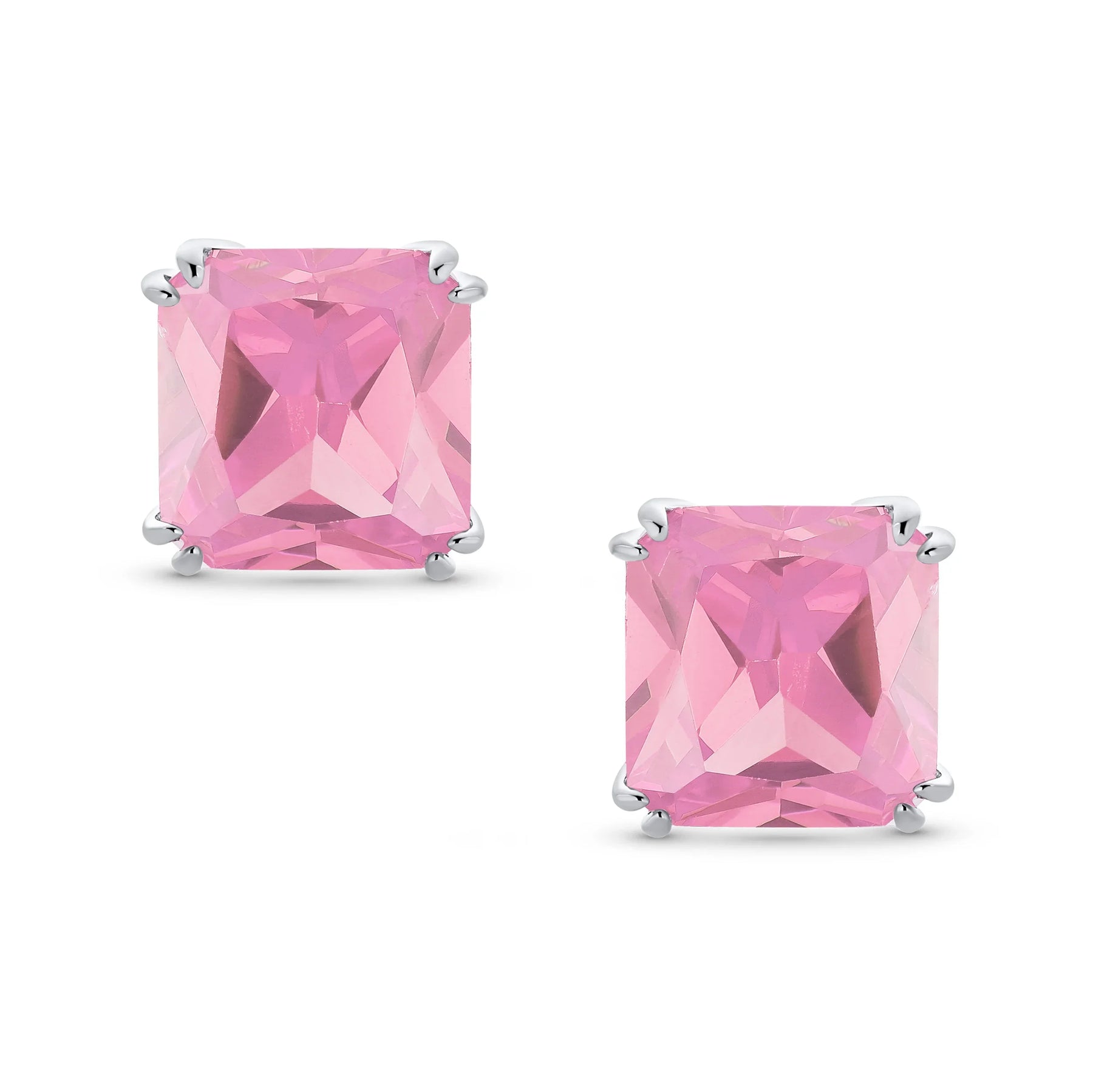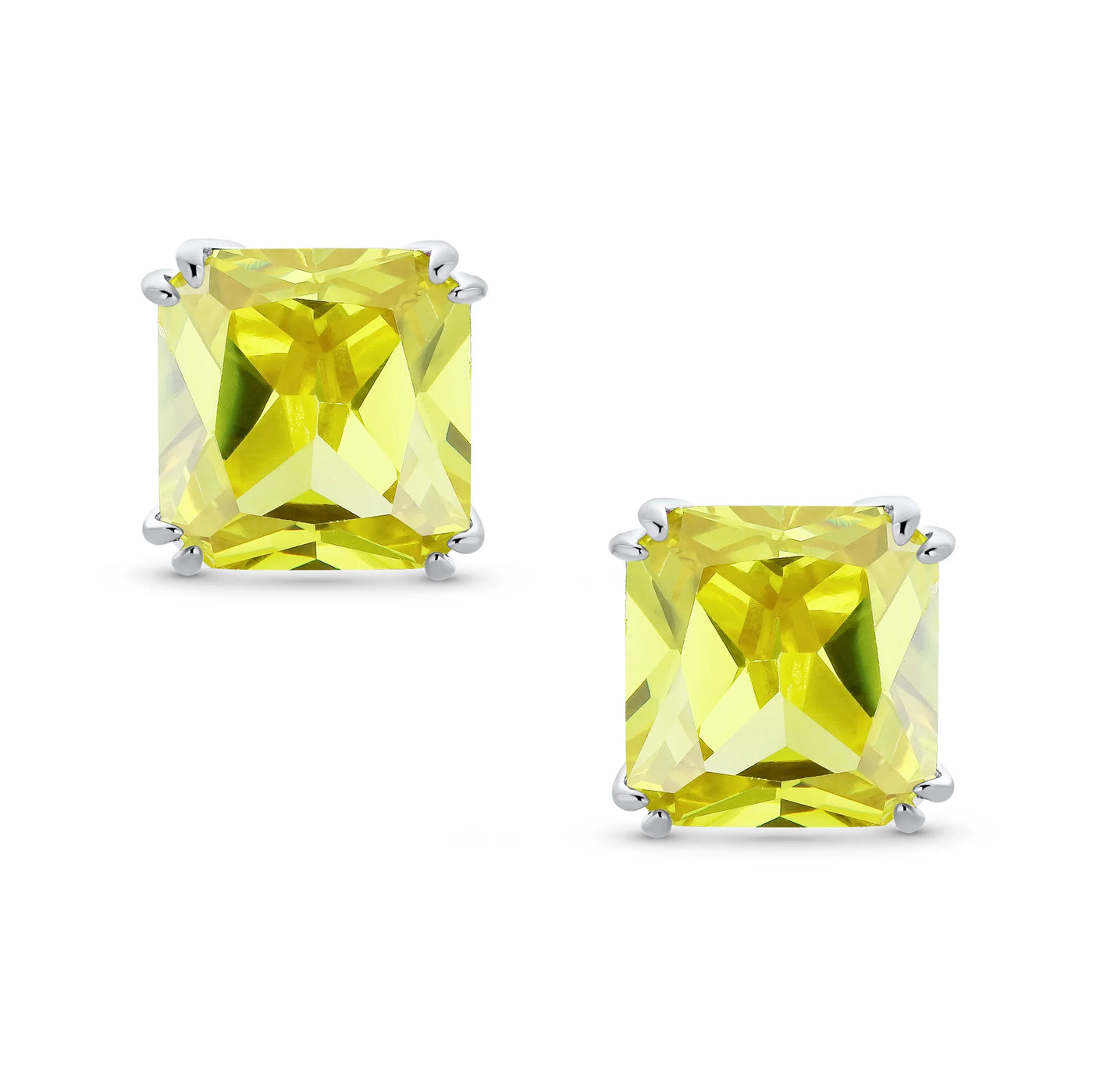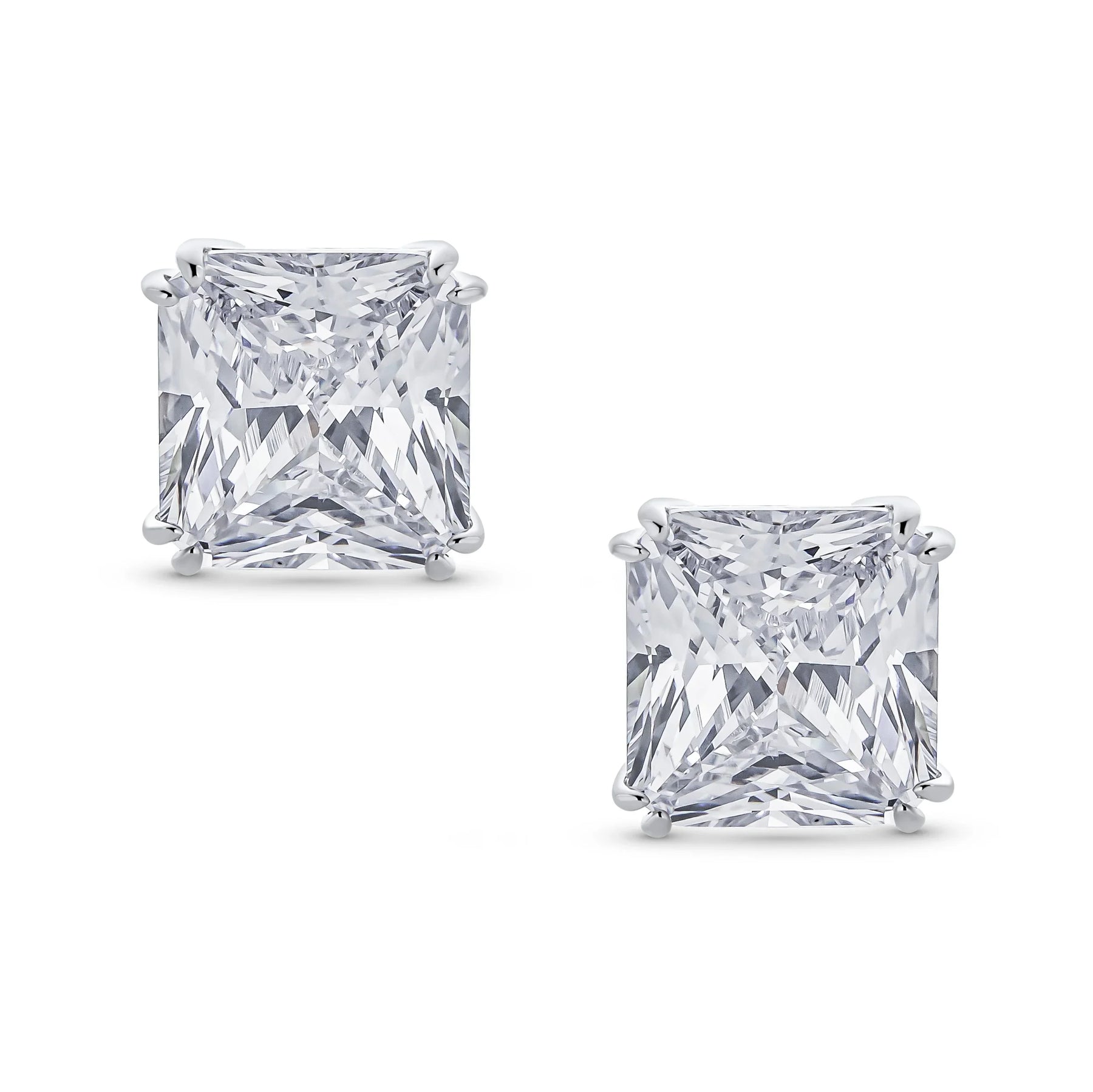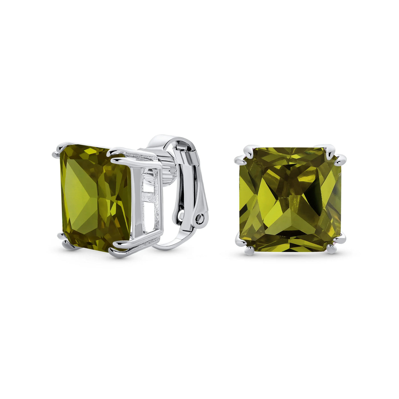 - Our square solitaire clip-on earrings are perfect for non-pierced ears. Featuring a 12mm cubic zirconia stone in a four-prong setting, these earrings shine brilliantly. Made with silver plating, these bridal studs attach comfortably and fashionably. Rhodium plating ensures long-lasting shine. Expect compliments when you wear these stunning cz stud earrings for women.