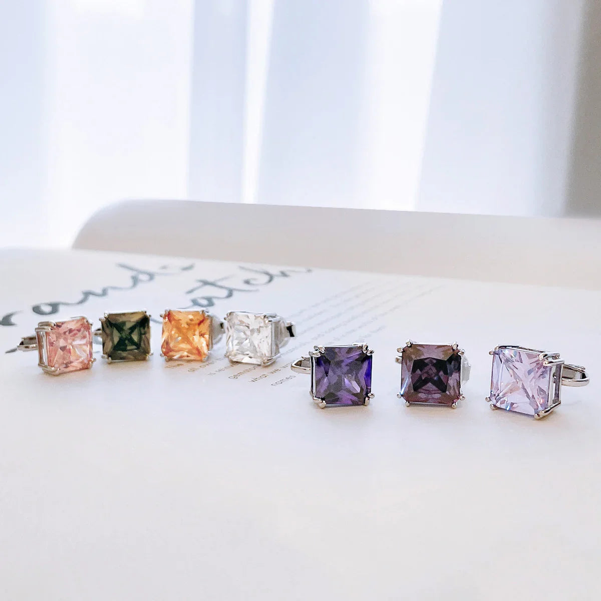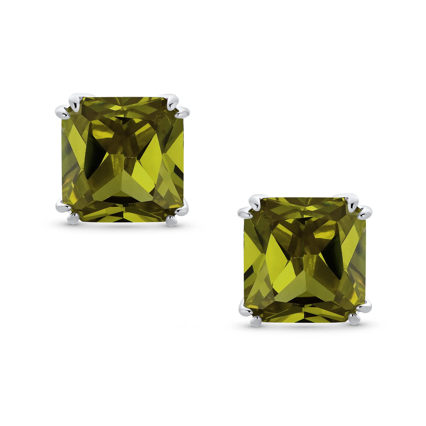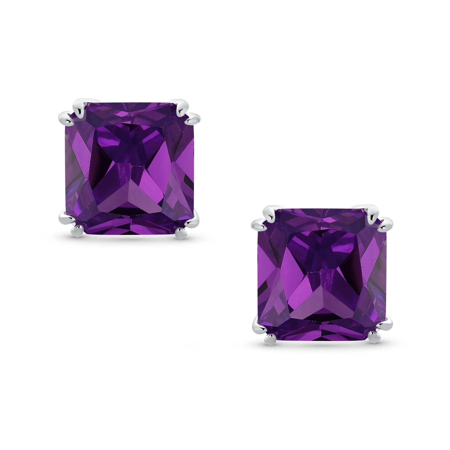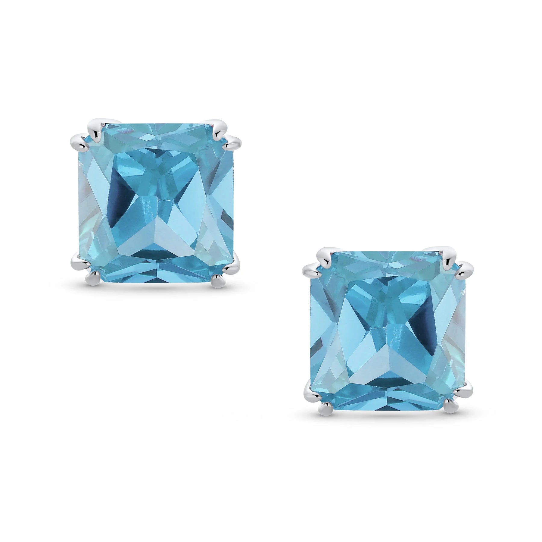 - Our square solitaire clip-on earrings are perfect for non-pierced ears. Featuring a 12mm cubic zirconia stone in a four-prong setting, these earrings shine brilliantly. Made with silver plating, these bridal studs attach comfortably and fashionably. Rhodium plating ensures long-lasting shine. Expect compliments when you wear these stunning cz stud earrings for women.