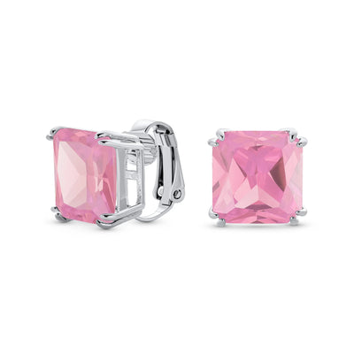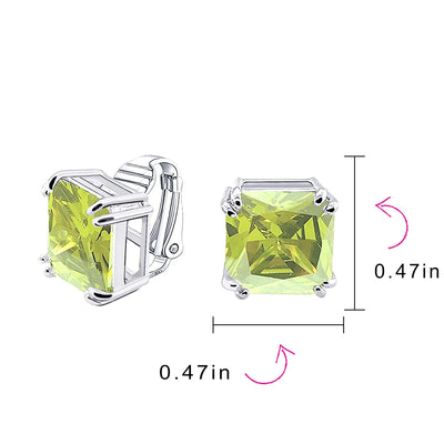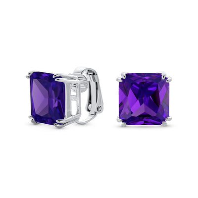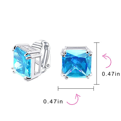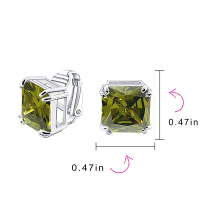 - MUST HAVE TIMELESS DESIGN - These simply stunning statement square CZ studs earrings are the perfect gift to anyone who loves earrings but doesnt have a pierced ears. These clip on have a beautiful 12mm CZ stone in many birthstone colors making them a great gift for any age or special occasion.