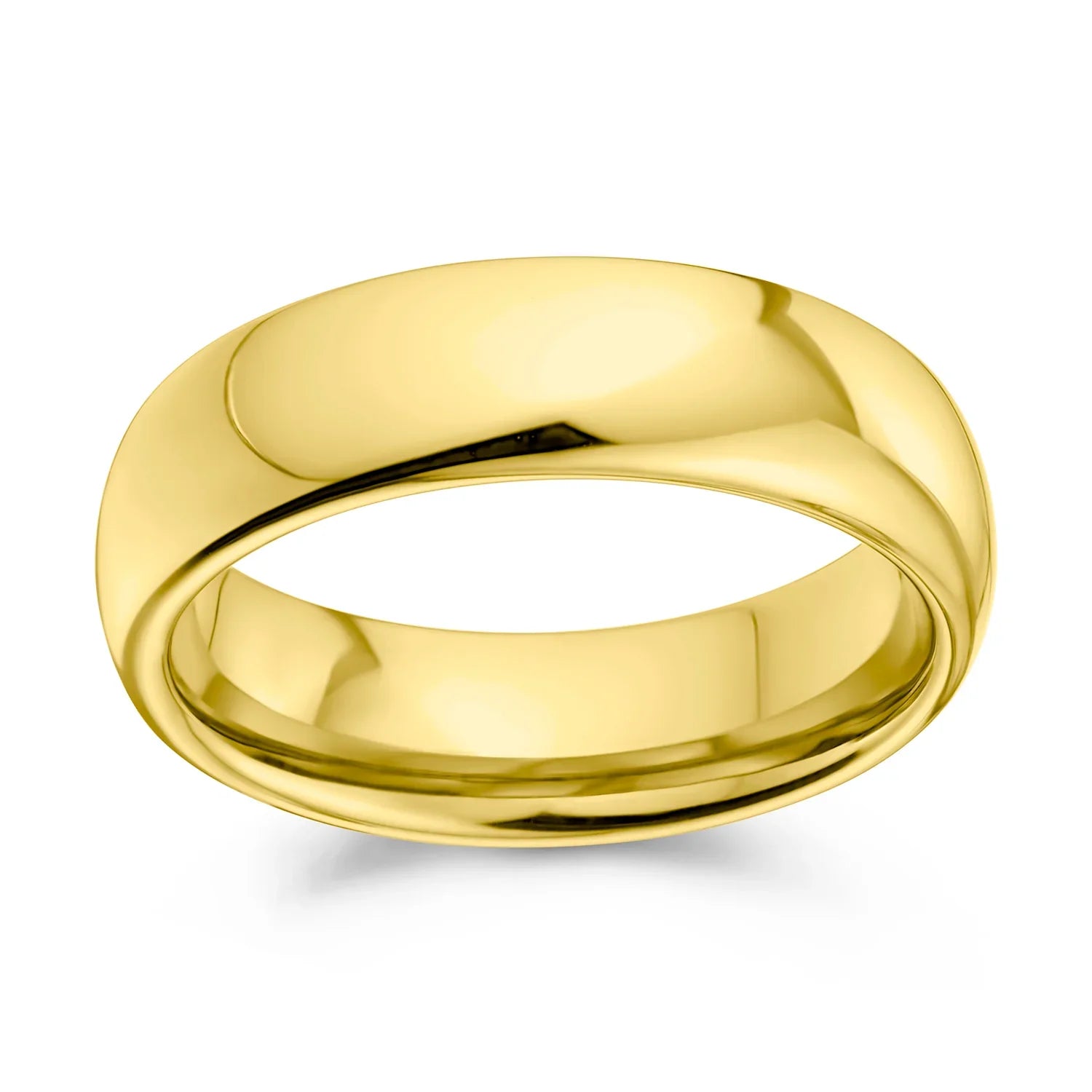 • This men's ring is designed in a timeless style and is the epitome of the classic Wedding Band ring. A 6mm Wedding Band, this piece is plain and simple but so charming. It is the ideal Wedding Band to show your loved one that you care. This Wedding Band is made from which is an extremely strong, tarnish resistant material and is sure to maintain a lustrous shine for a long time. If you want a high polish band and want to do it in style then this is the ring for you. Order this charming men's Wedding Band now.