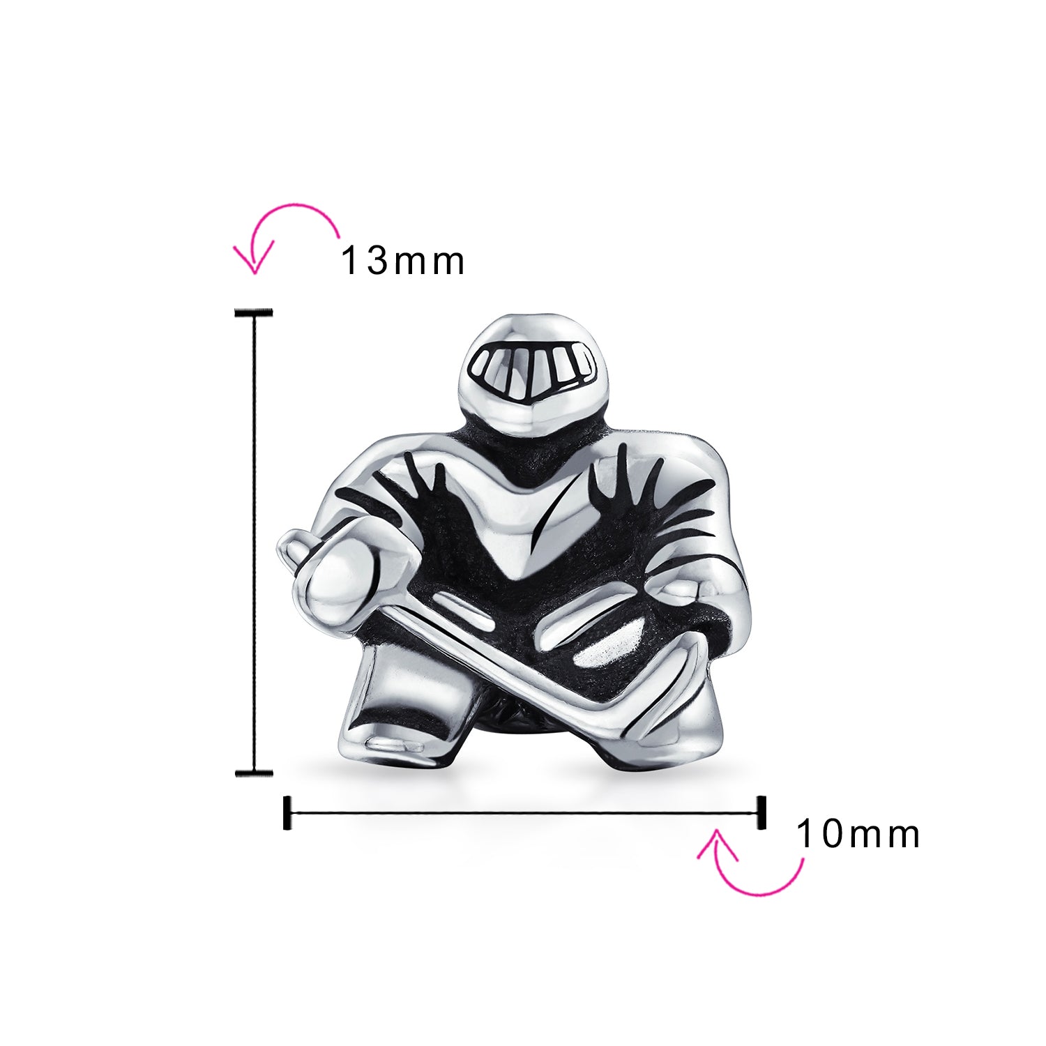- The 5mm unthreaded core, oxidized sterling silver goaltender will be the perfect touch to the bead story of any ice hockey fan, no matter the team.