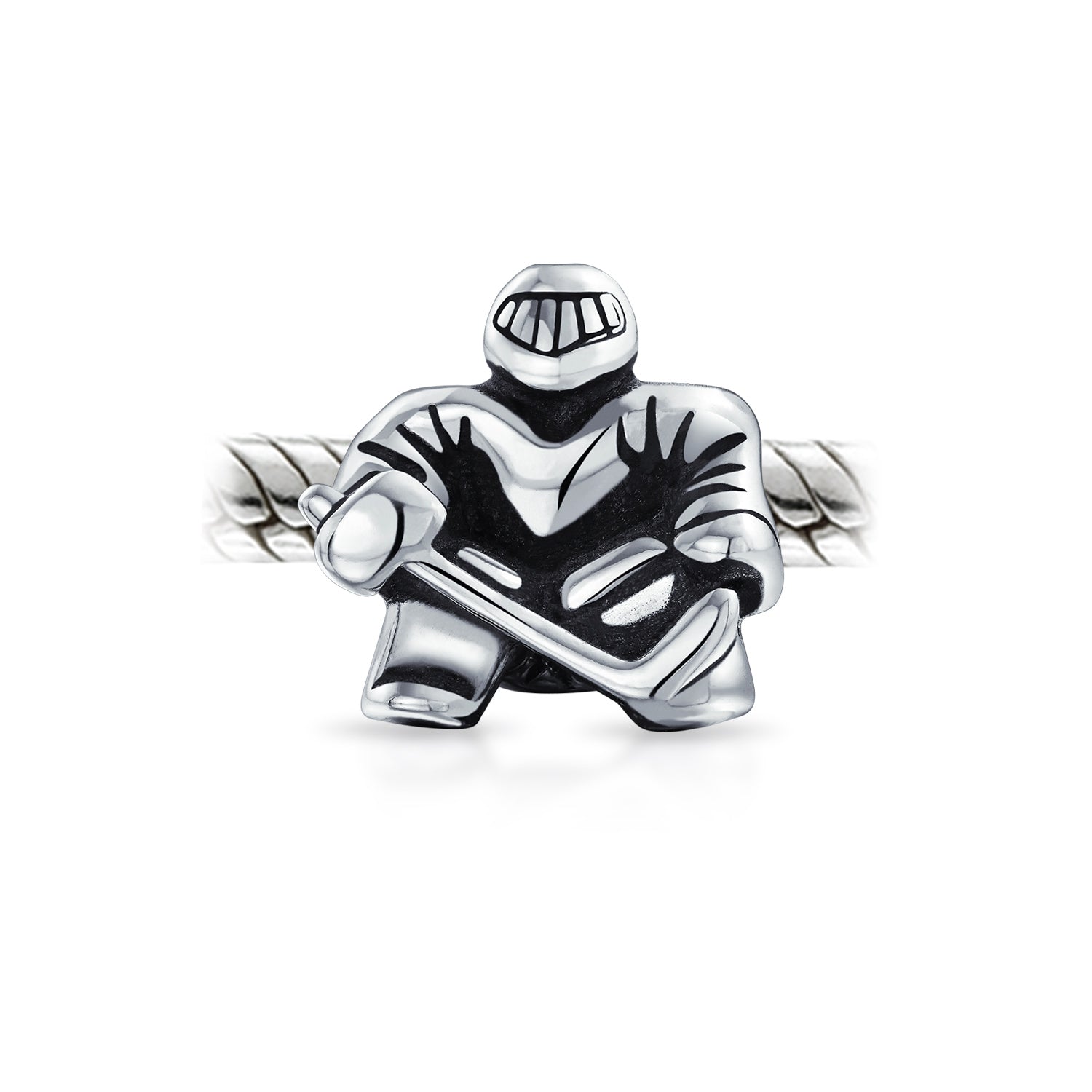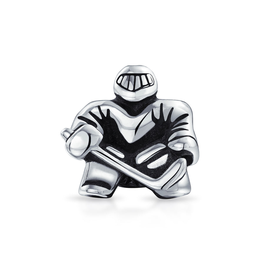 - A skilled goalie knows stopping shots is key to winning, and this .925 sterling silver hockey bead proves it. This detailed sports charm fits perfectly on any bracelet, showcasing a ready-to-defend goalkeeper. Ideal for ice hockey enthusiasts, this bead will be your favorite charm.