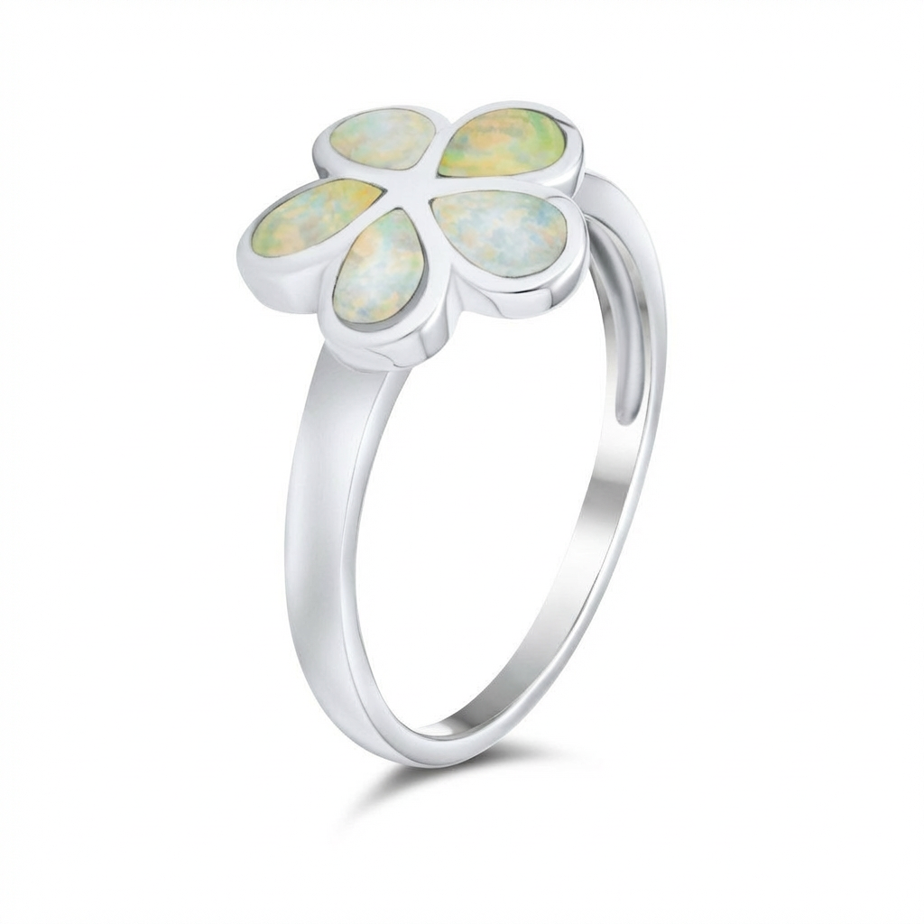 - Celebrate October birthdays effortlessly with our stunning .925 sterling silver flower ring. Perfect for jewelry lovers, it features iridescent colors that change with light. Rhodium plating prevents tarnish, ensuring long-lasting beauty. Flower rings are fun, memorable gifts. Surprise loved ones with an affordable Created opal ring this holiday season.