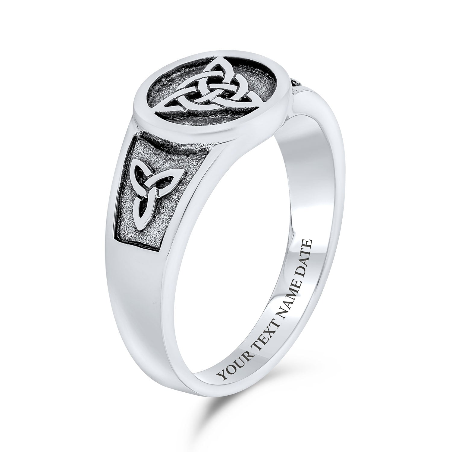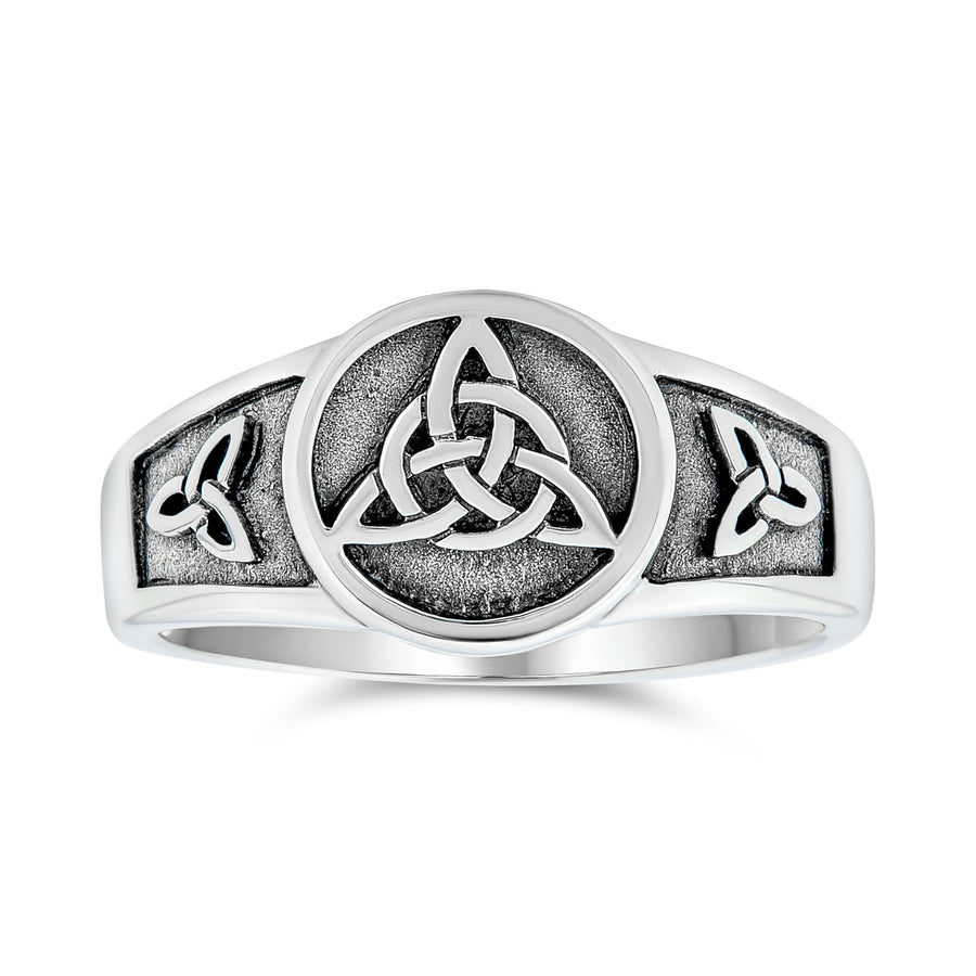 - Enhance your style with this triquetra Celtic knot ring. The weathered sterling silver offers an Antique Style look. Three Celtic knots and a triquetra knot face adorn the ring. Perfect for any occasion, this subtle jewelry piece complements any wardrobe. Collect this Celtic knot jewelry or gift it for birthdays or graduations.