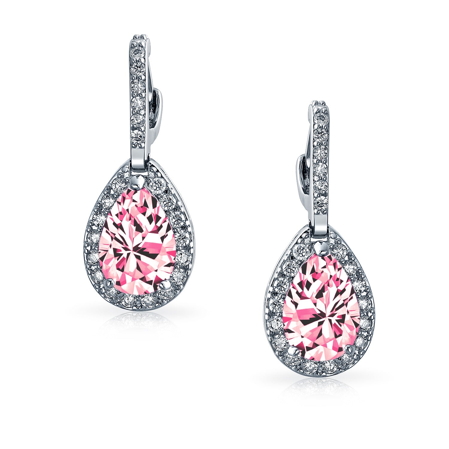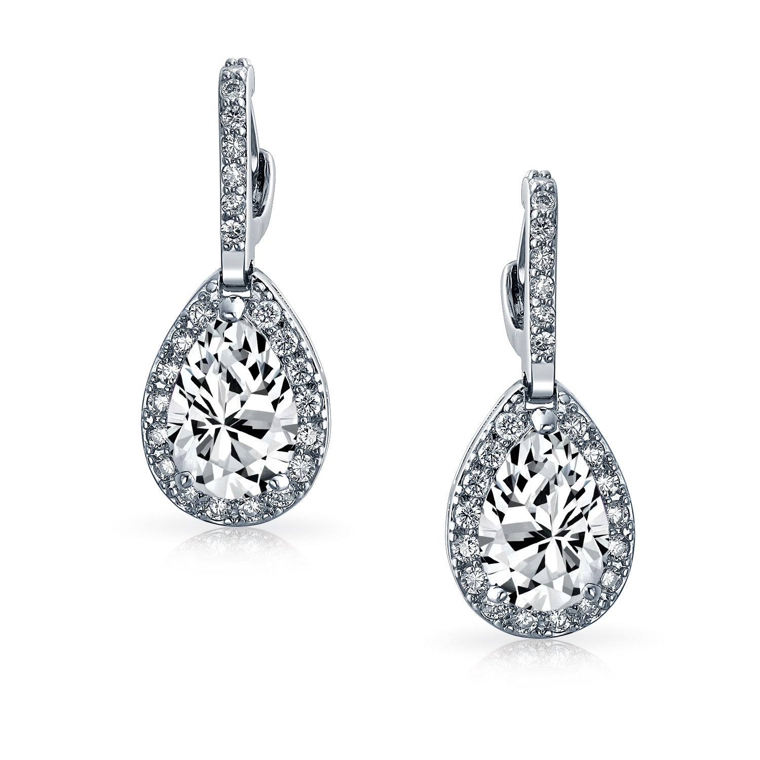 - Embrace elegance with silver-plated pave teardrop CZ dangle earrings. These cubic zirconia chandelier earrings add dazzling sparkle to any outfit. Perfect April birthstone gift for chic friends.