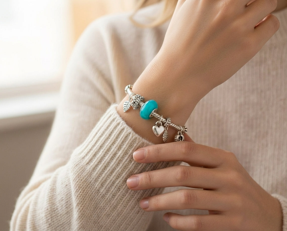 - Enhance your beads bracelet with vibrant stabilized turquoise beads. Affordable and stylish, they pair perfectly with sterling silver charms. Personalize your unique story bracelet effortlessly. Ideal for December birthstone jewelry gifts.