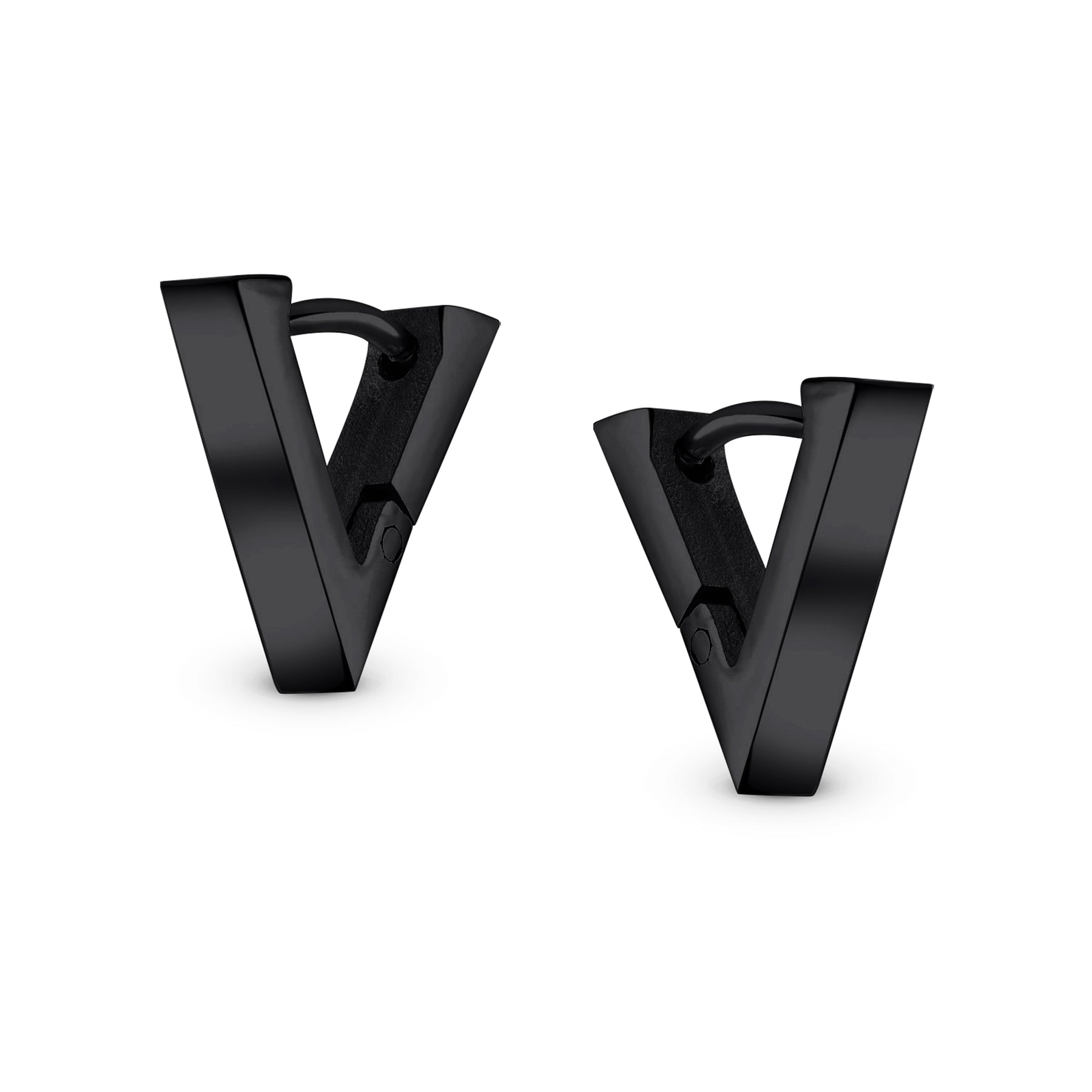 Set of 2 Geometric Triangle V-Shaped Black Hoop Huggie Earrings Stainless Steel - Bling Jewelry