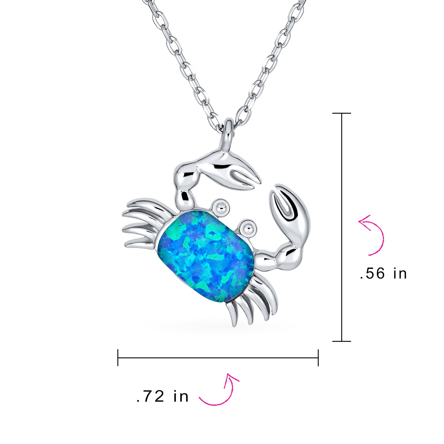 - Our rhodium plated sterling silver crab pendant features shimmering blue opal bodies. This adorable nautical pendant amps up everyday chic. Perfect October birthstone or Cancer Zodiac jewelry. Buy now!
