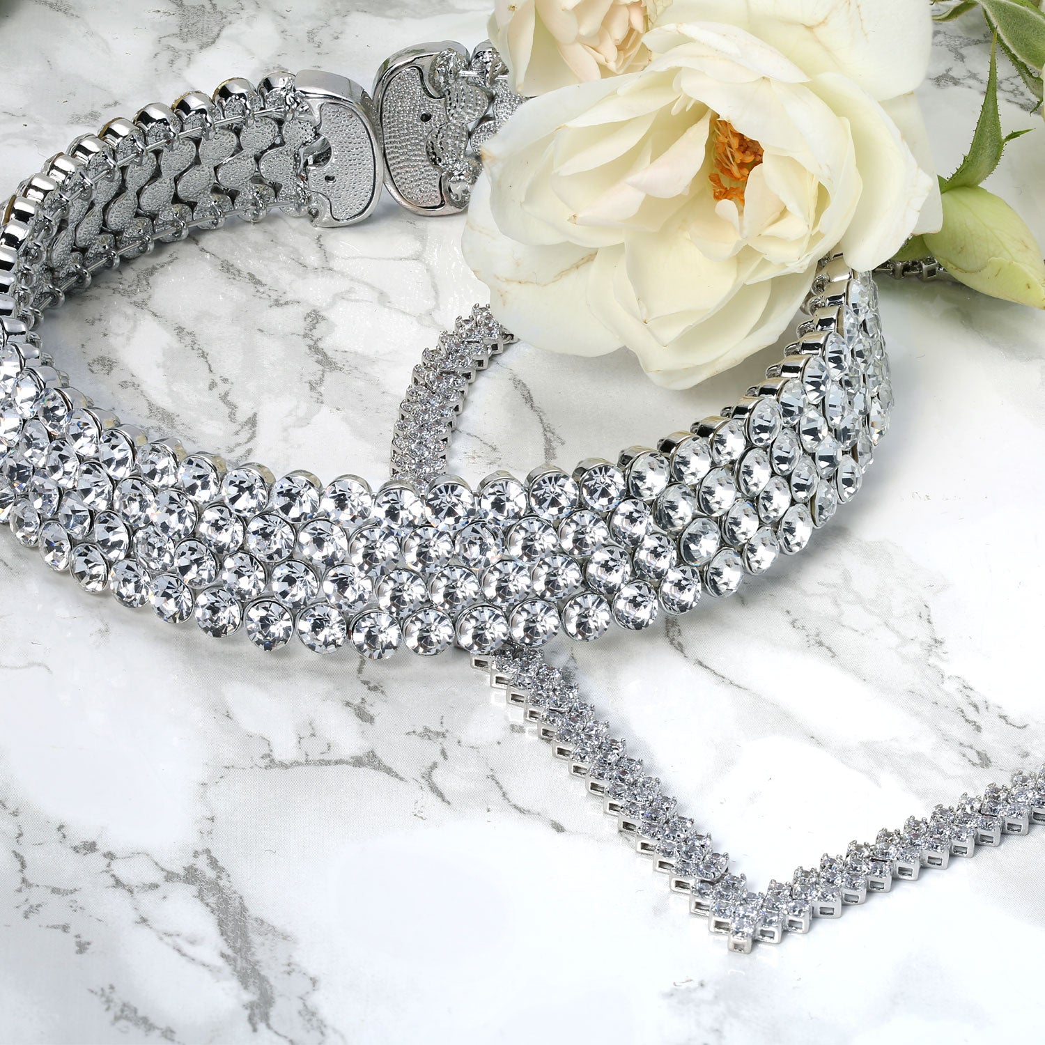 - Measure: 0.35 Inch Wide x 16 Inch Length, Stone 3mm x 3mm, Weight: 22.45 Grams, Material: Anti-Tarnish Rhodium Plated Brass, Cubic Zirconia, HYPOALLERGENIC - Lead free Nickle-free.
