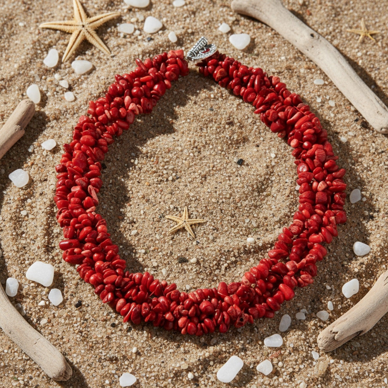 A shorter length that falls just around the base of the neck. Popular for beaded necklaces so they can sit above a crew neck t-shirt.