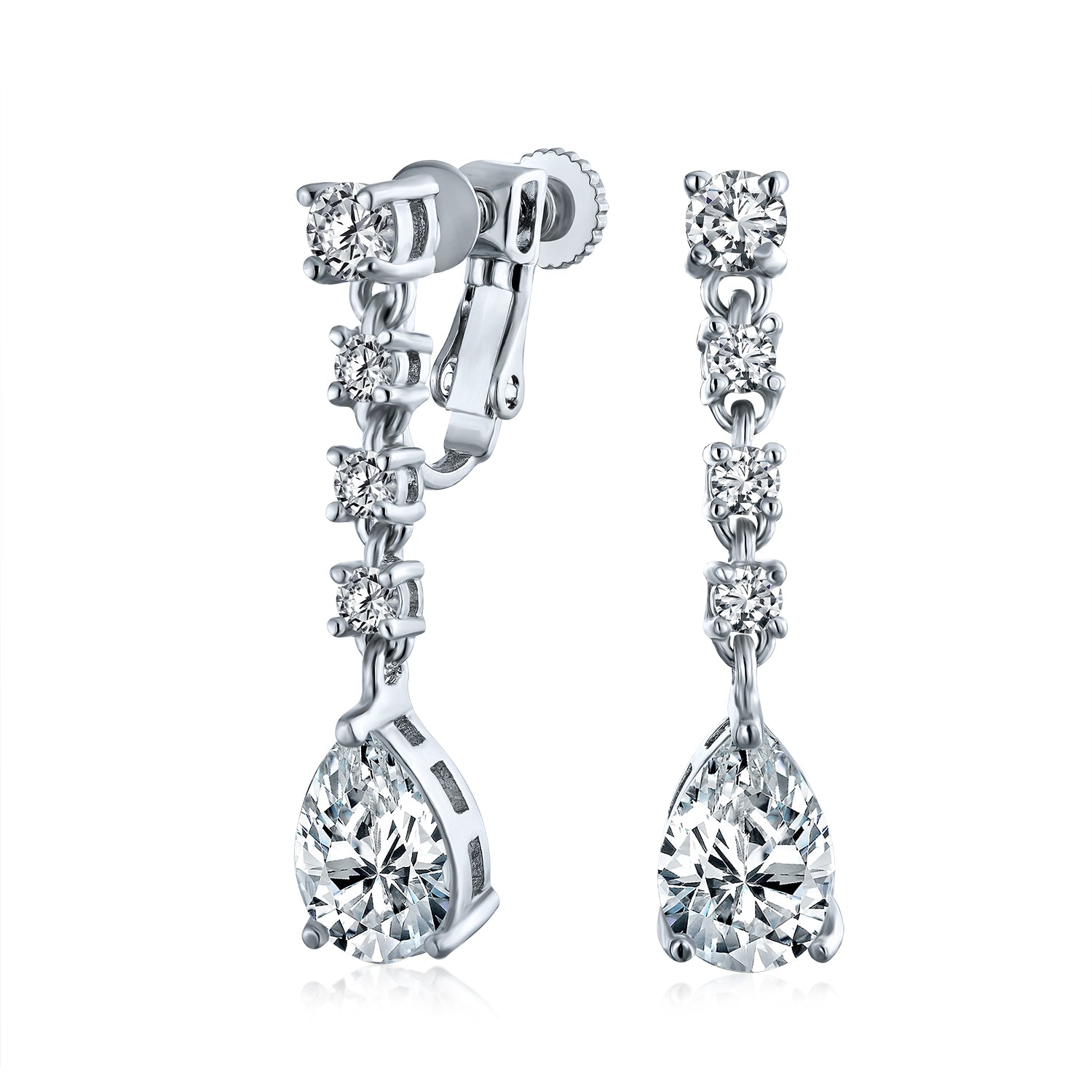 - Introducing our timeless glam CZ statement necklace, designed to make her shine. This exquisite piece includes matching CZ dangling clip-on earrings. Specially designed with a screw-on back for non-pierced ears. Perfect bridal jewelry set for any fashion-forward lady. Crafted with care, our stunning April birthstone jewelry is an ideal gift. Rhodium plated for long-lasting brilliance and extra radiance.