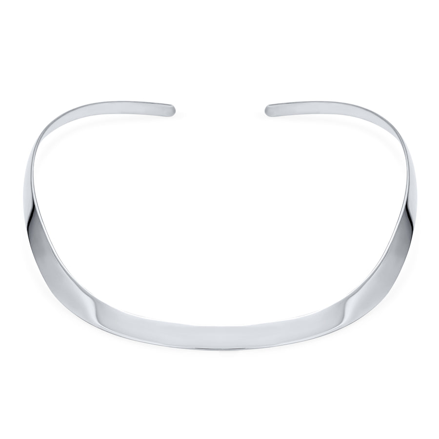 - Wide Choker -This is a statement polished curved shaped lays perfectly on the collar bone. Very modern urban style. This is a timeless investment piece.