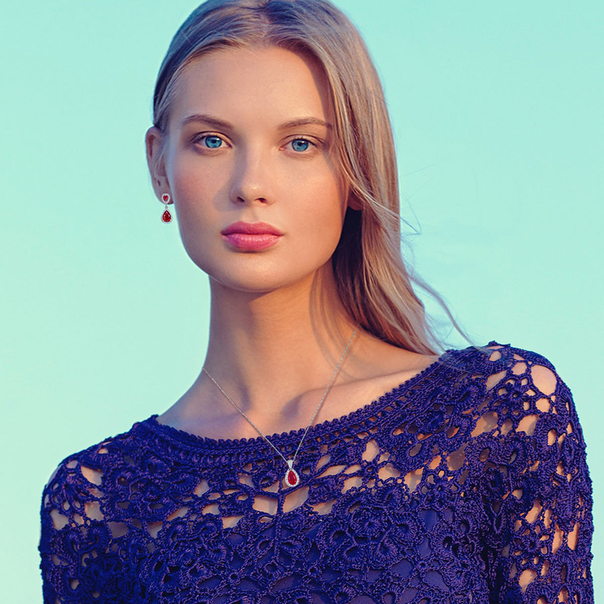 • Our elegant July birthstone necklace and earring set is ideal for weddings or formal events. Shine bright with Created Red Ruby jewelry. Look stunning without breaking the bank. The dazzling red color ensures you stand out.