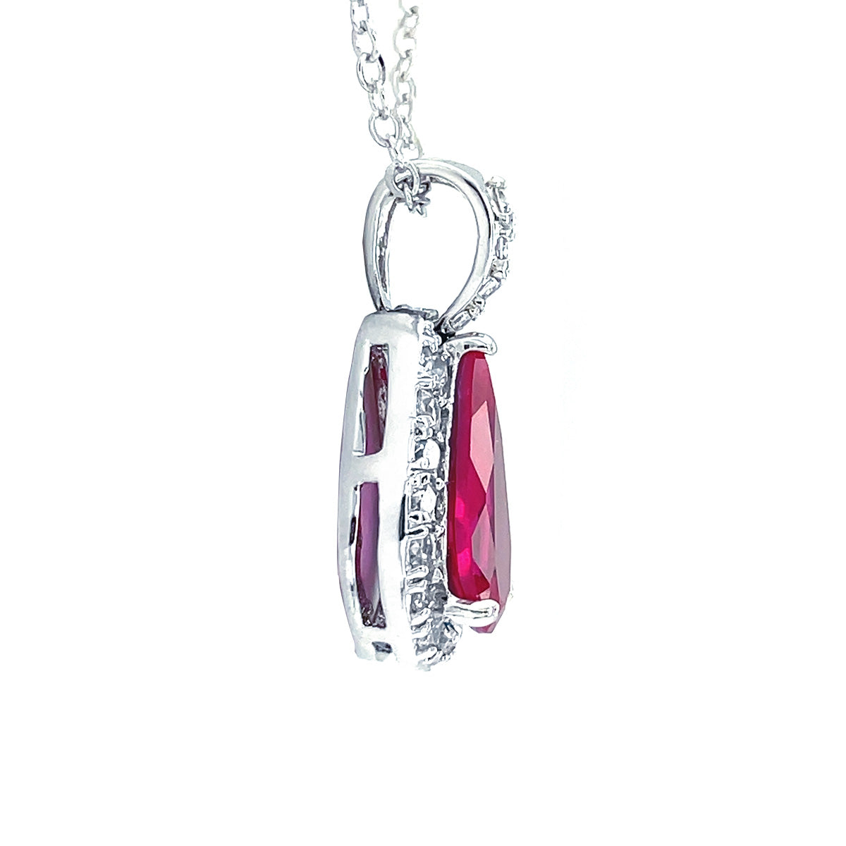 • Traditional Art Deco Teardrop Necklace - Featuring a breathtaking 15CT teardrop pendant, this exquisite necklace is perfect for prom, evening events, cocktail parties, holidays, or as a bridal party gift. Available in vibrant red ruby birthstone colors, it allows you to choose the perfect match for your style. Elevate your formal attire with this stunning necklace, showcasing a created red ruby teardrop centerpiece surrounded by a halo, ideal for those celebrating a July birthday.