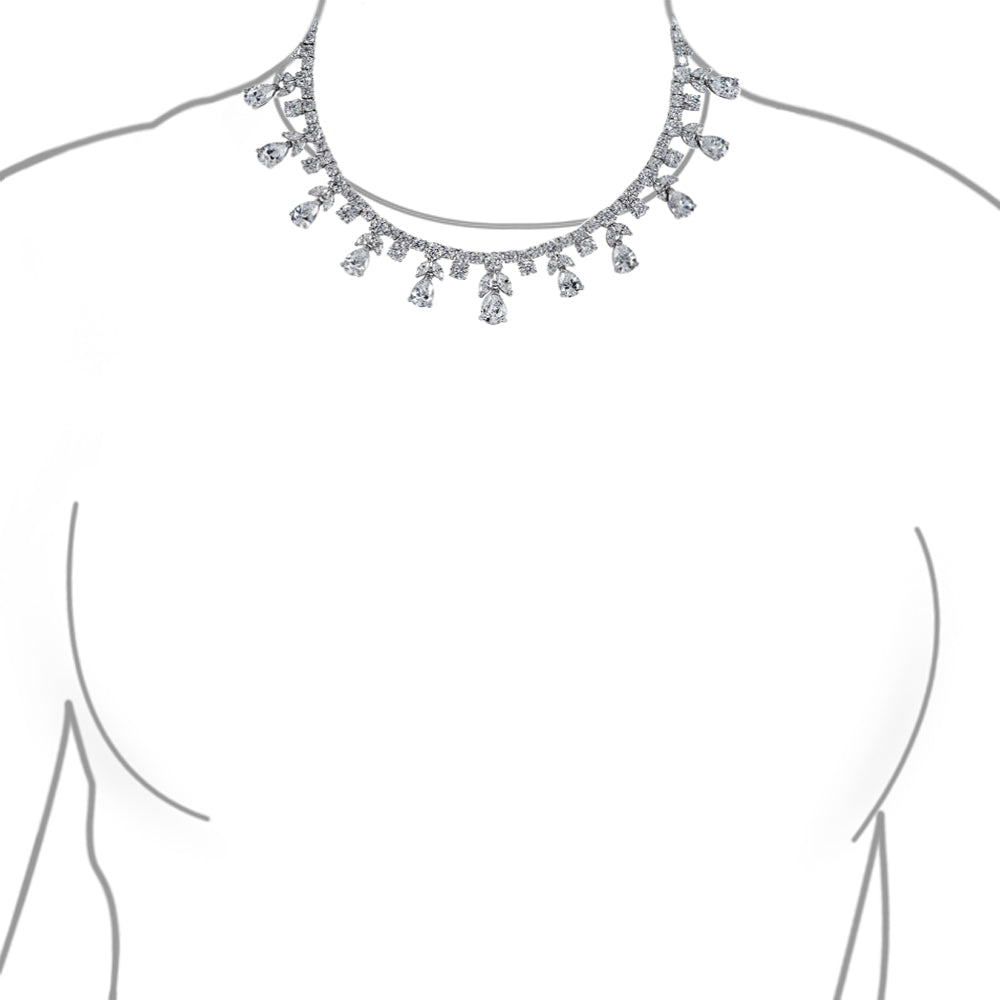 - ELEVATE YOUR BRIDAL LOOK: Make a stunning statement as you walk down the aisle or attend any formal event with this sumptuous bridal choker necklace. The exquisite design features pear-shaped CZ stones gracefully dipping from a shimmering embellished choker. ELEGANT DESIGN: This bridal choker necklace is designed to elevate your overall look and add an extra touch of sophistication to your special day. SPARKLING CZ STONES: The pear-shaped CZ stones beautifully cascade from the embellished choker, creating a mesmerizing sparkle that will catch everyones attention. Not just for weddings, this versatile piece can also be worn at other formal events such as galas, proms, or anniversary celebrations.