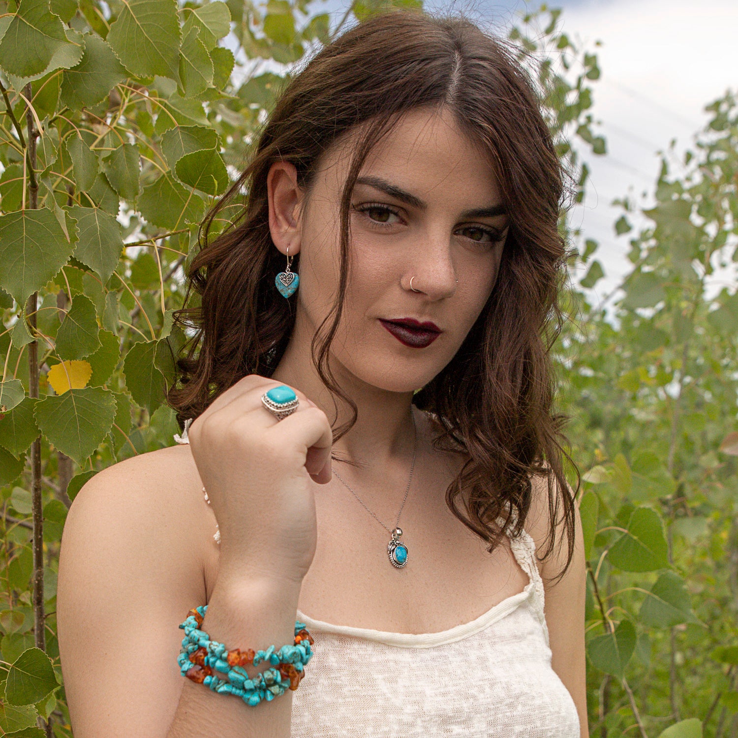 - Measure: Stone: 15mm L x 10mm W Bottom Band 3MM Width Weight: 7.5 Grams Material: .925 Sterling Silver, Created Turquoise, Each piece is stamped .925 guarantees the quality and craftmanship HYPOALLERGENIC - Lead-Free Nickle-free
