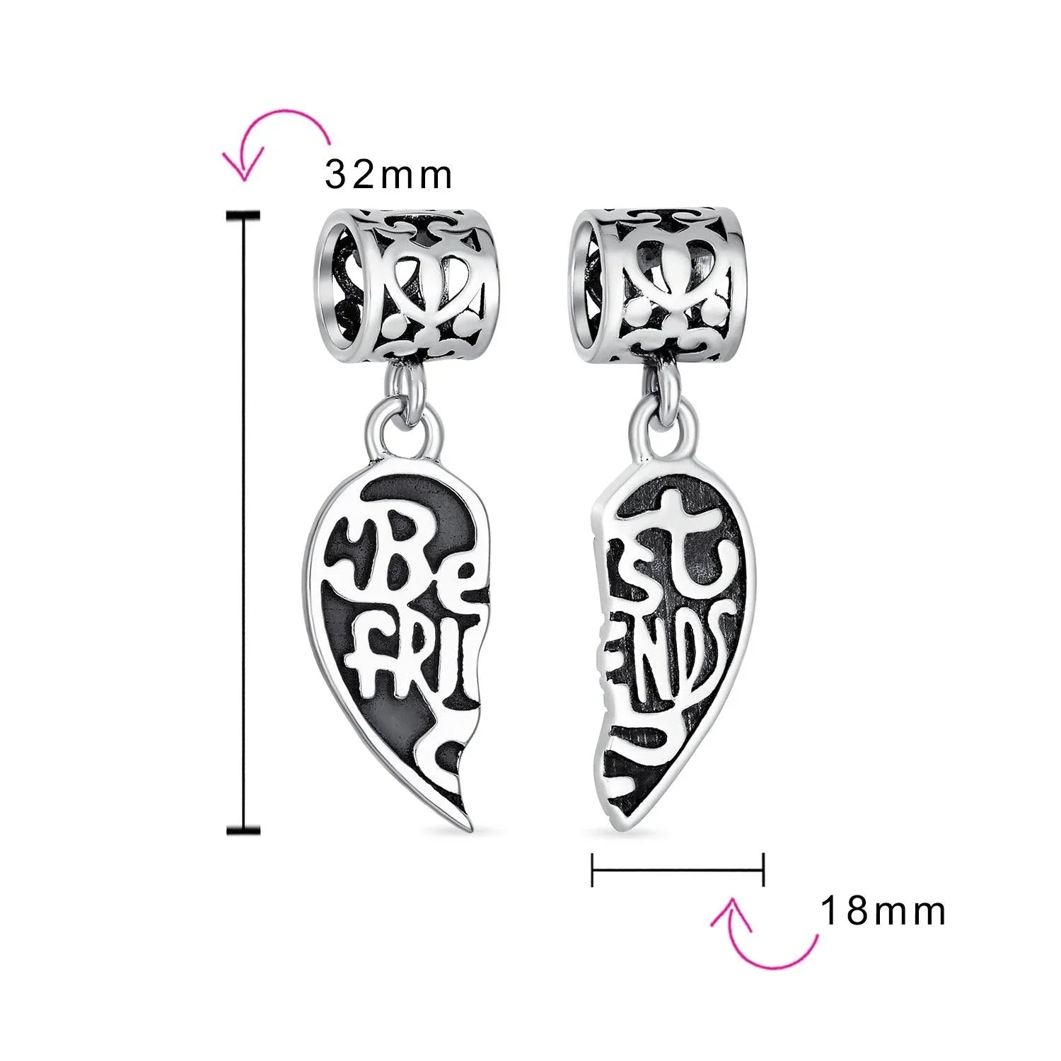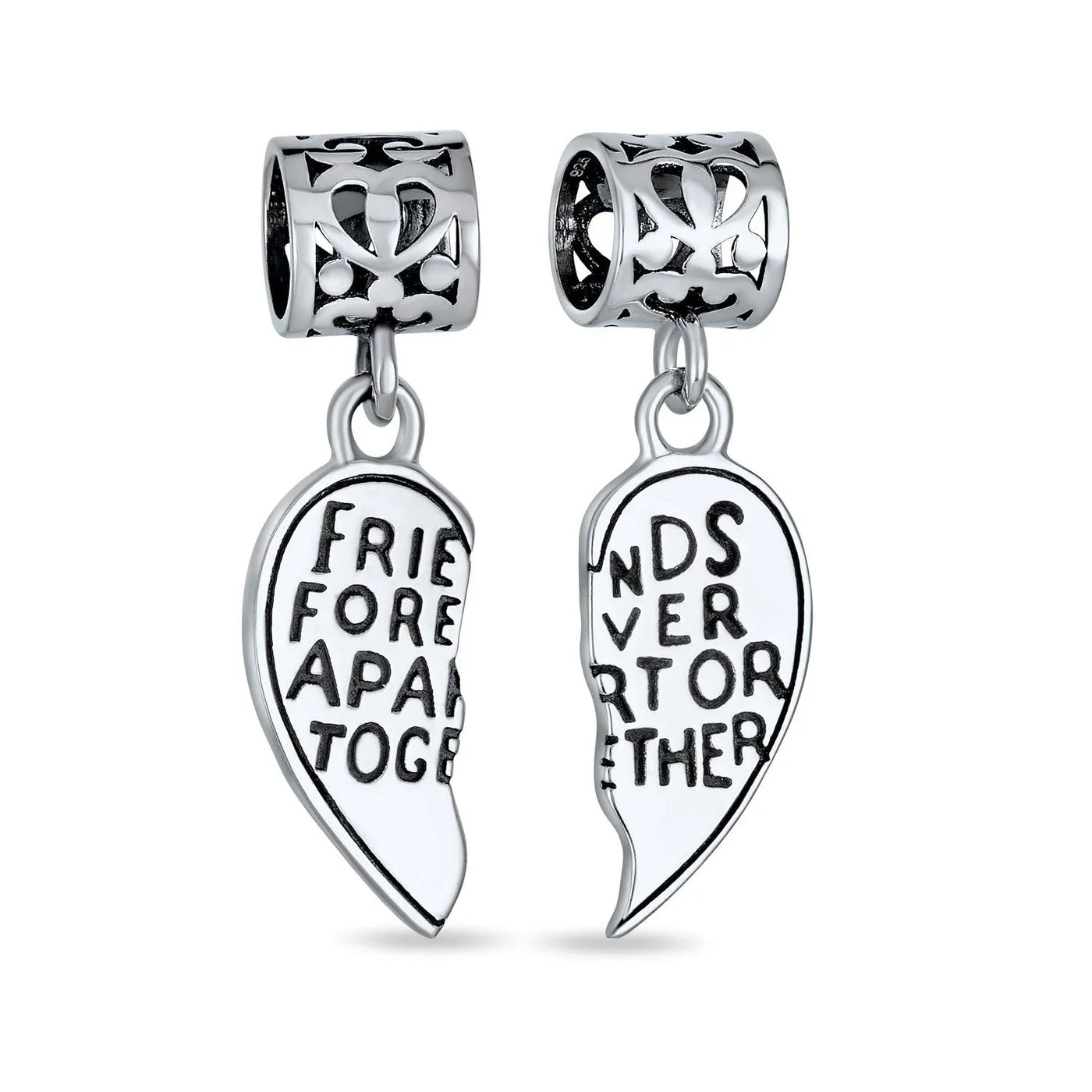 - Gift your best friend a cherished symbol of friendship. Even if you're miles apart, show her your love. This sterling silver heart charm reads "best friends" on one side and "friends forever apart or together" on the other. Wear it as a necklace or bracelet charm. Celebrate your special bond with this meaningful jewelry piece. Start a story bracelet with this love bead. Add more beads to tell your friendship story. The bead core measures 5mm.