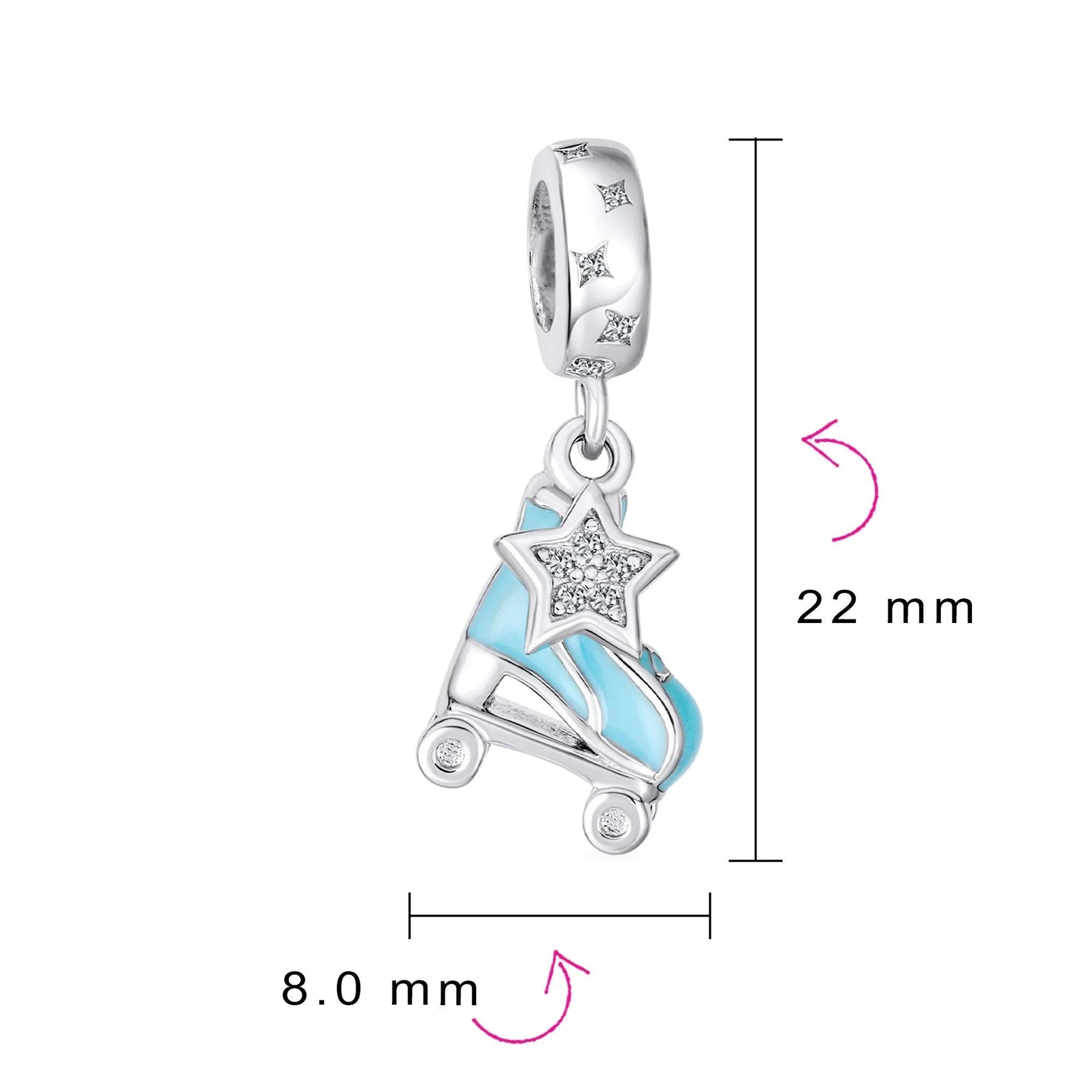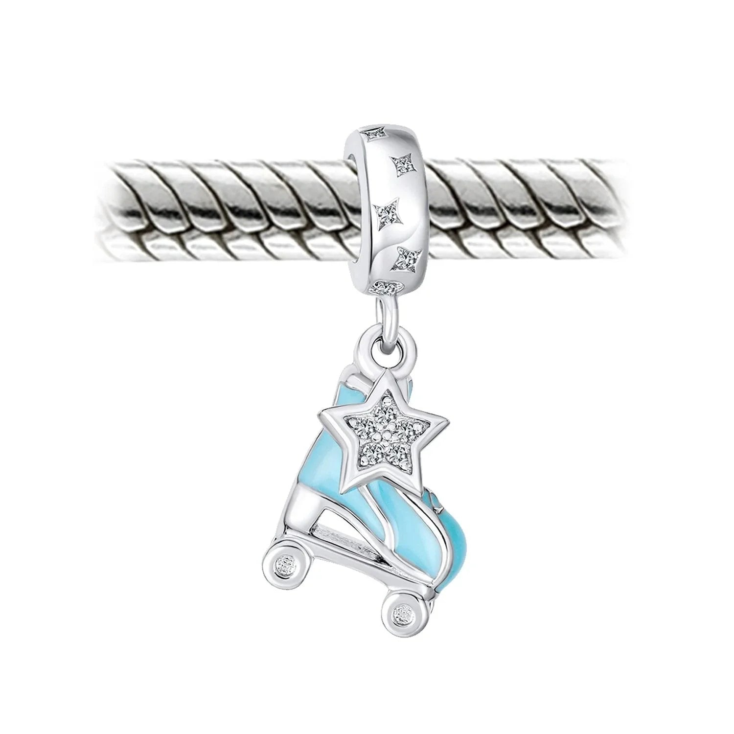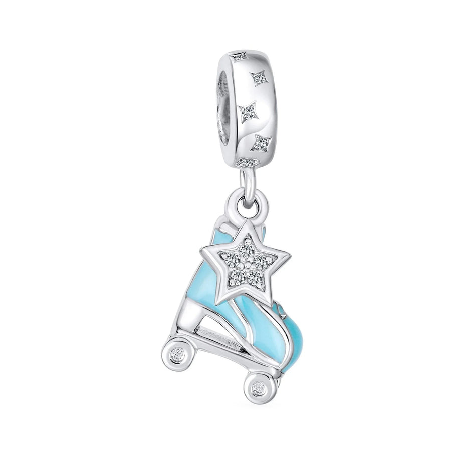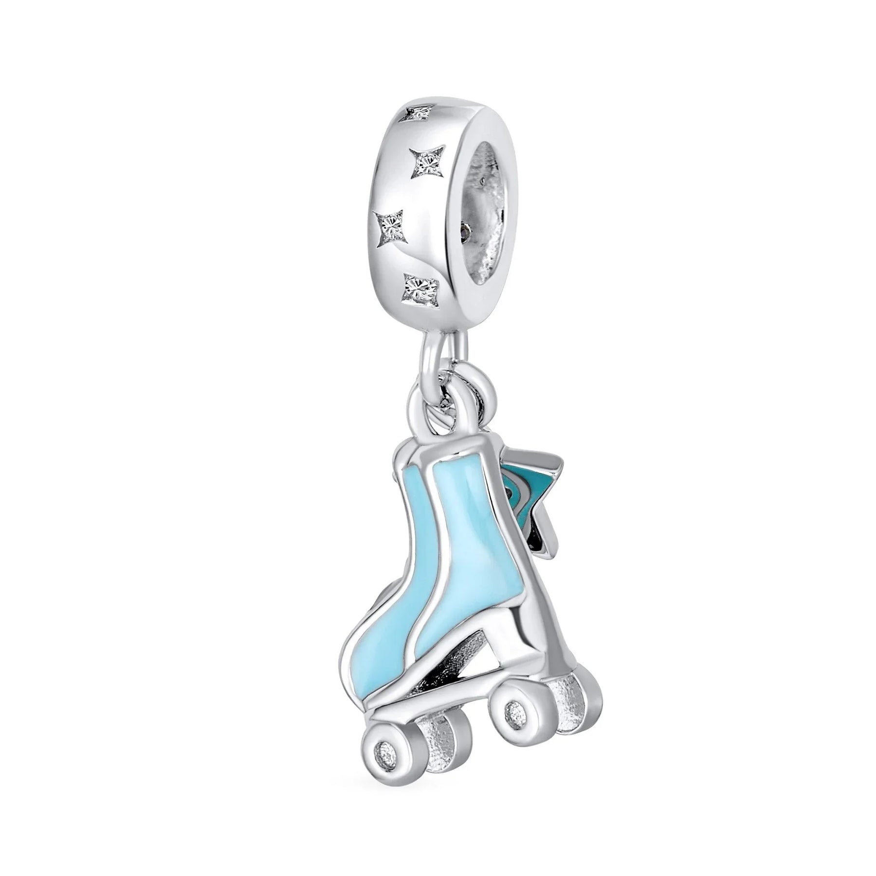 - Our light blue enamel roller skates dangle bead is the perfect gift for skating enthusiasts. This tiny Sterling Silver roller blade replica features blue enamel and a dangling star. Ideal for adventure lovers, it adds a sensational touch to any beads bracelet.