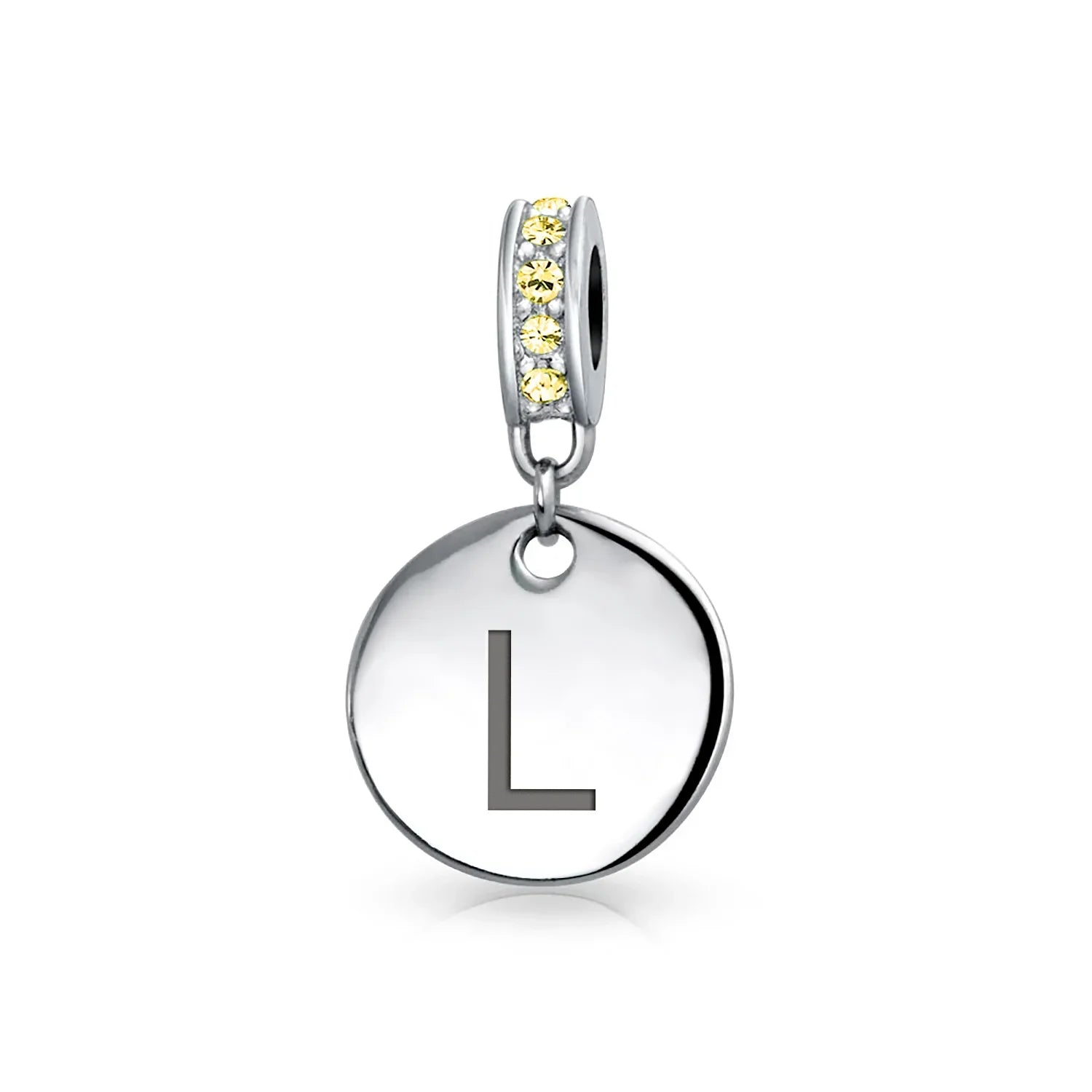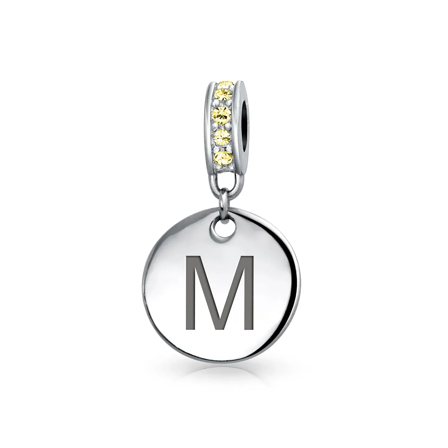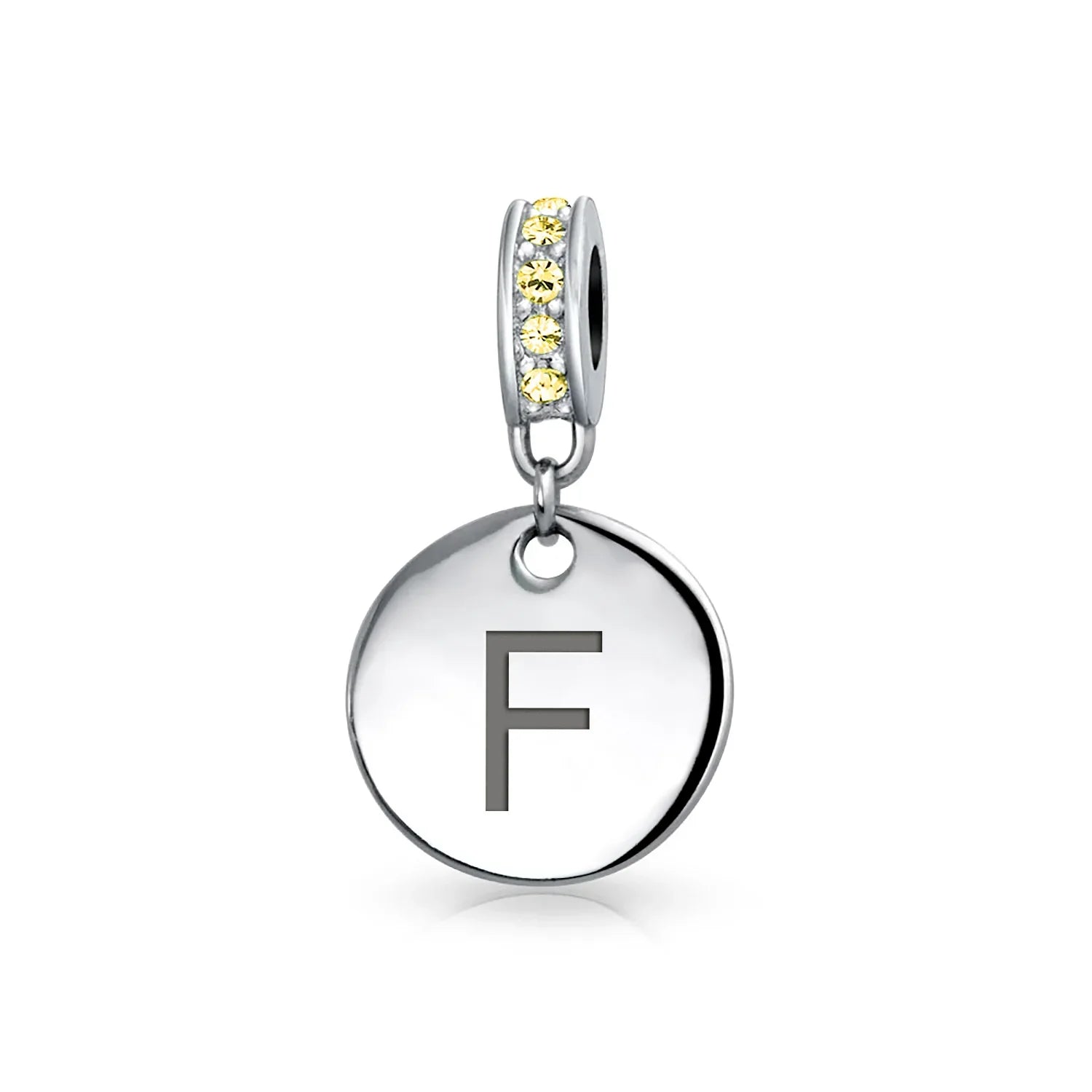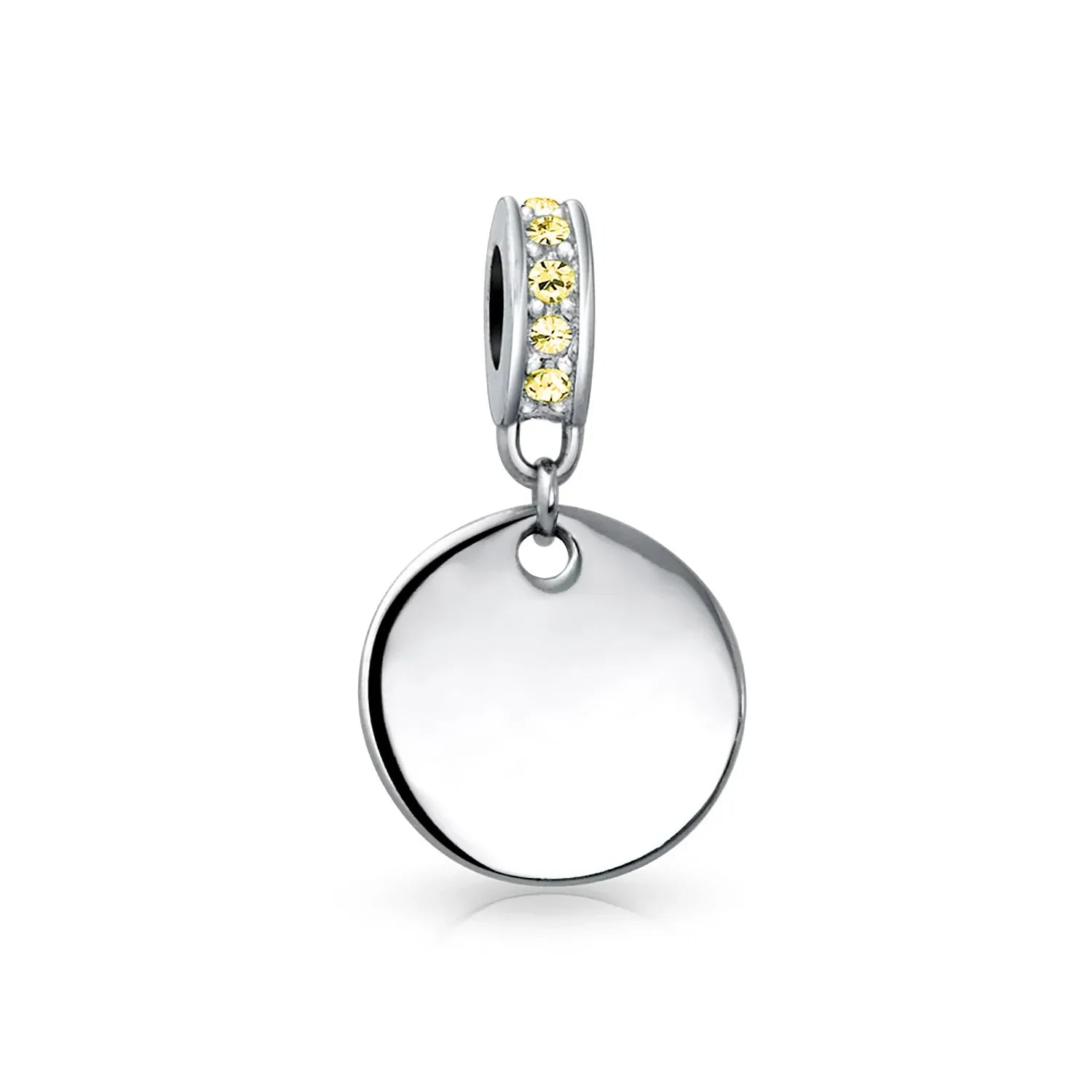 - Celebrate precious moments with our 925 Sterling Silver Circle Disc charm. Adorned with simulated Citrine crystals, it adds love to any bracelet. Perfect November birthstone gift for her and new moms.