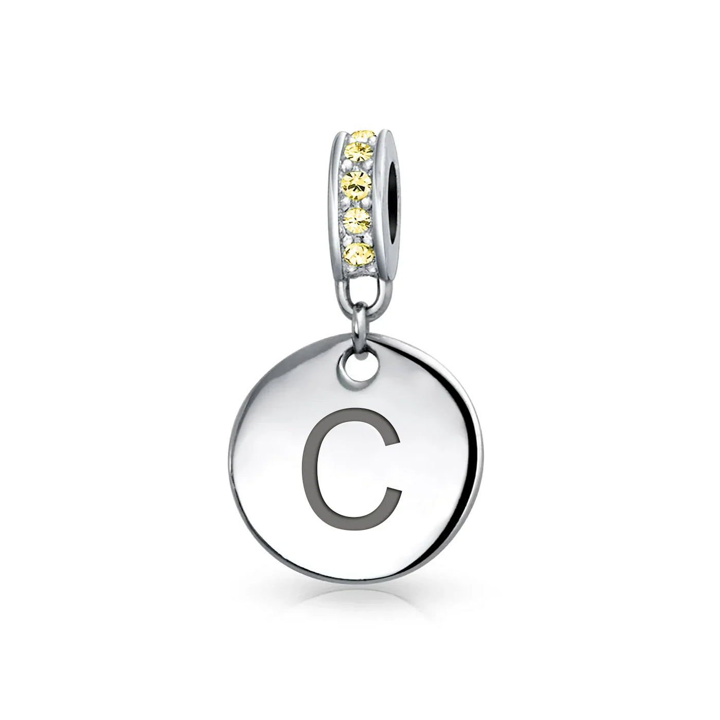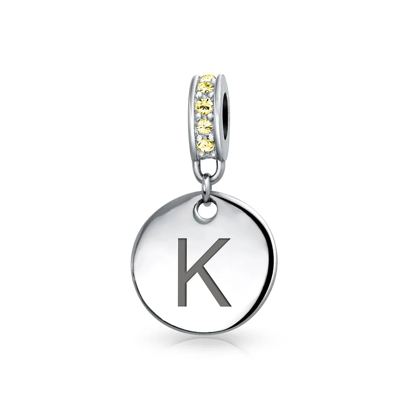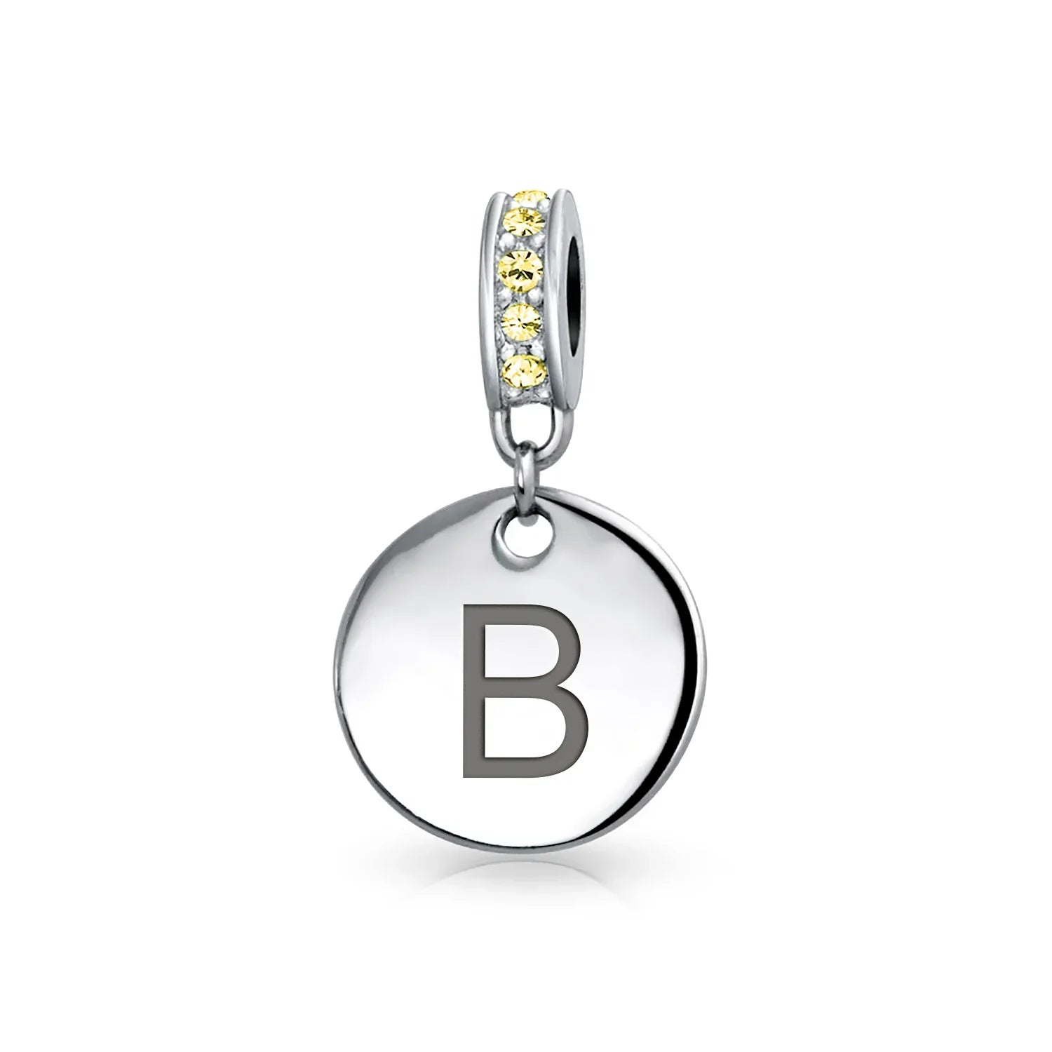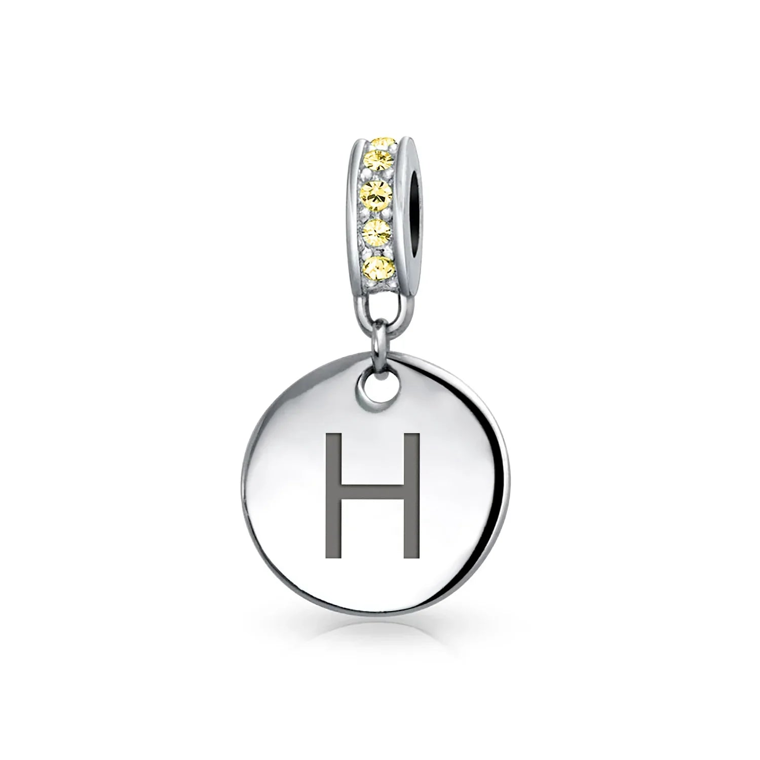 - Celebrate precious moments with our 925 Sterling Silver Circle Disc charm. Adorned with simulated Citrine crystals, it adds love to any bracelet. Perfect November birthstone gift for her and new moms.