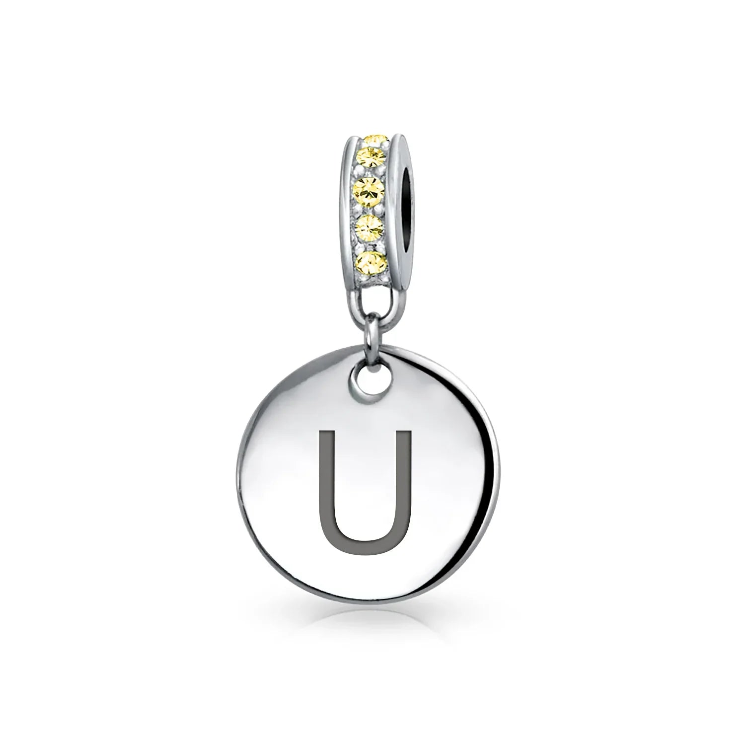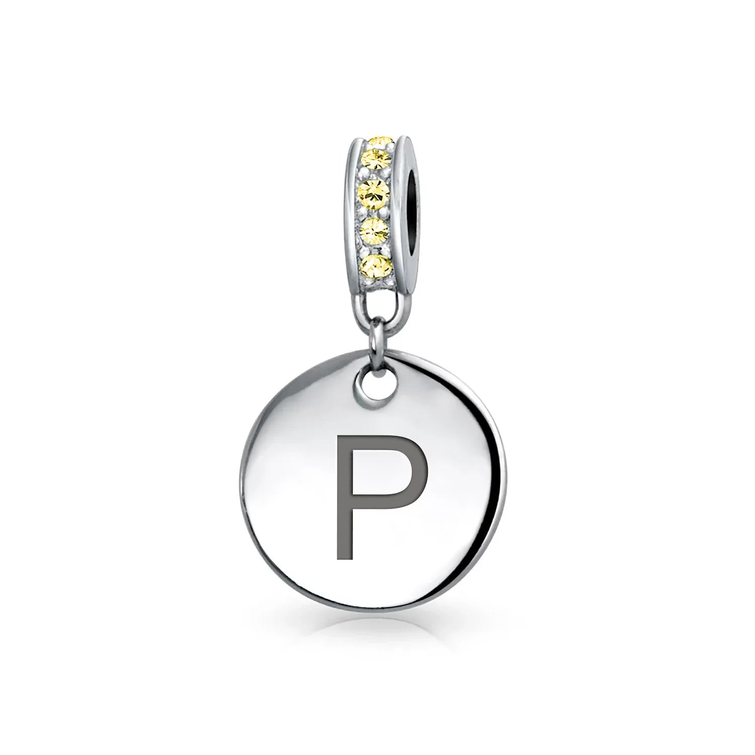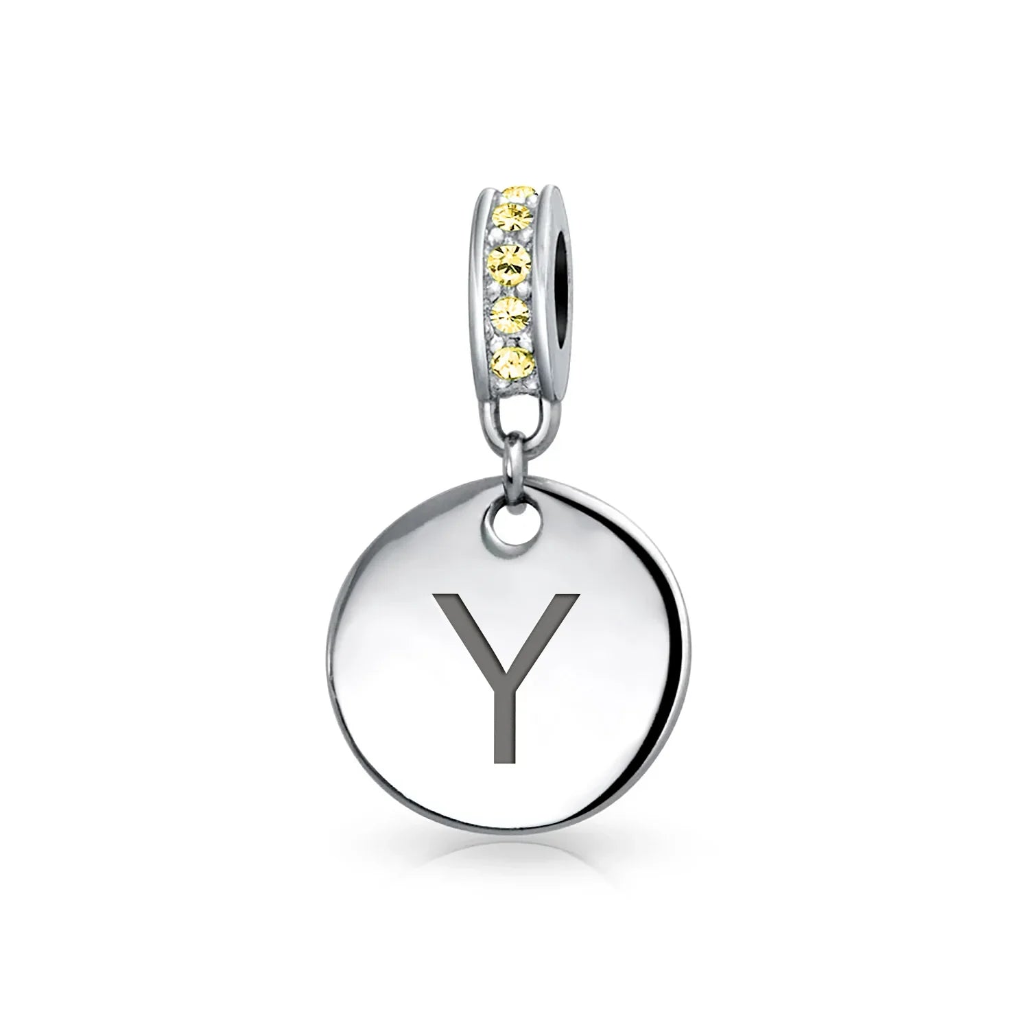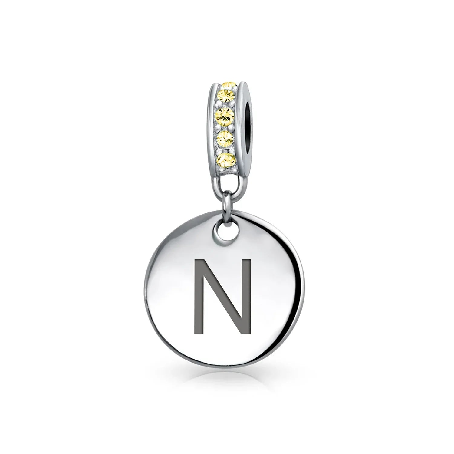 - Celebrate precious moments with our 925 Sterling Silver Circle Disc charm. Adorned with simulated Citrine crystals, it adds love to any bracelet. Perfect November birthstone gift for her and new moms.
