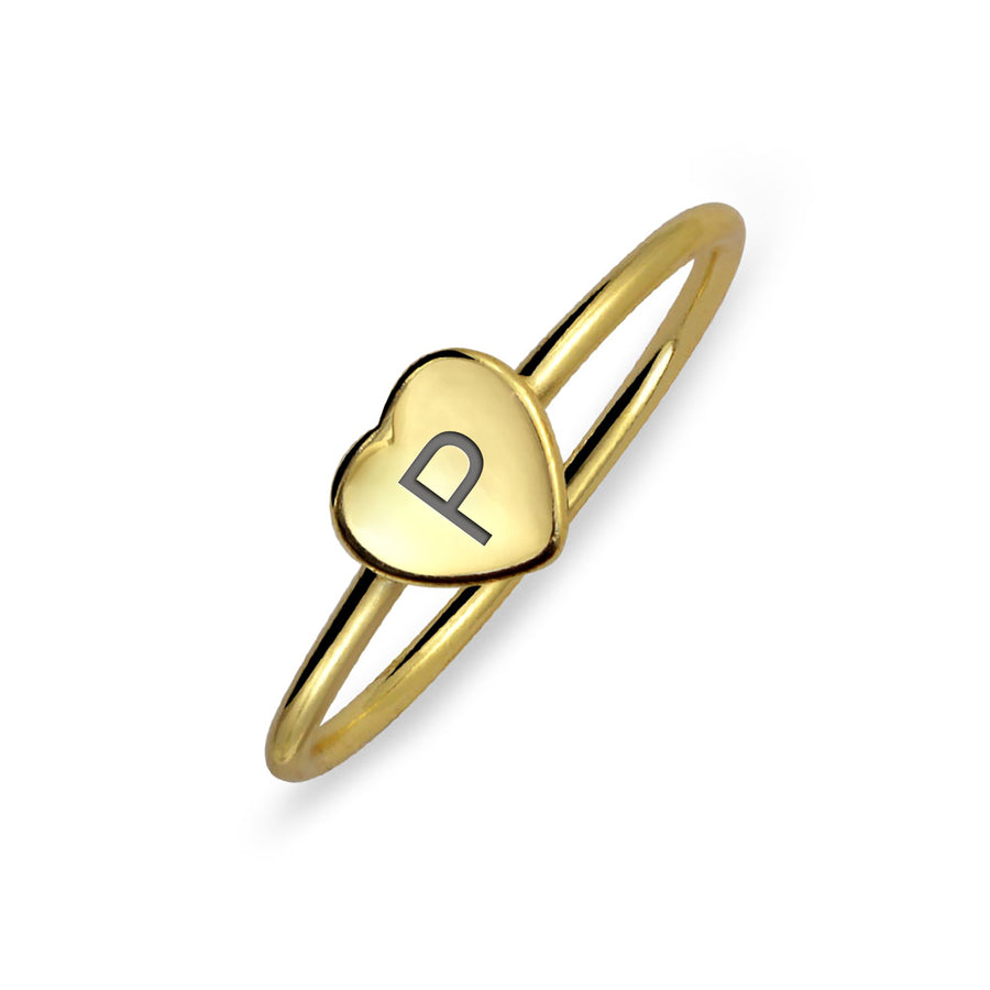 • PERSONALIZE - Customize your jewelry box with this trendy initial ring. On flat heart has a stamped letter in its sparkling 14K gold plated sterling silver. This is a great fashion gift and a beautiful alphabet script addition to your jewelry box.