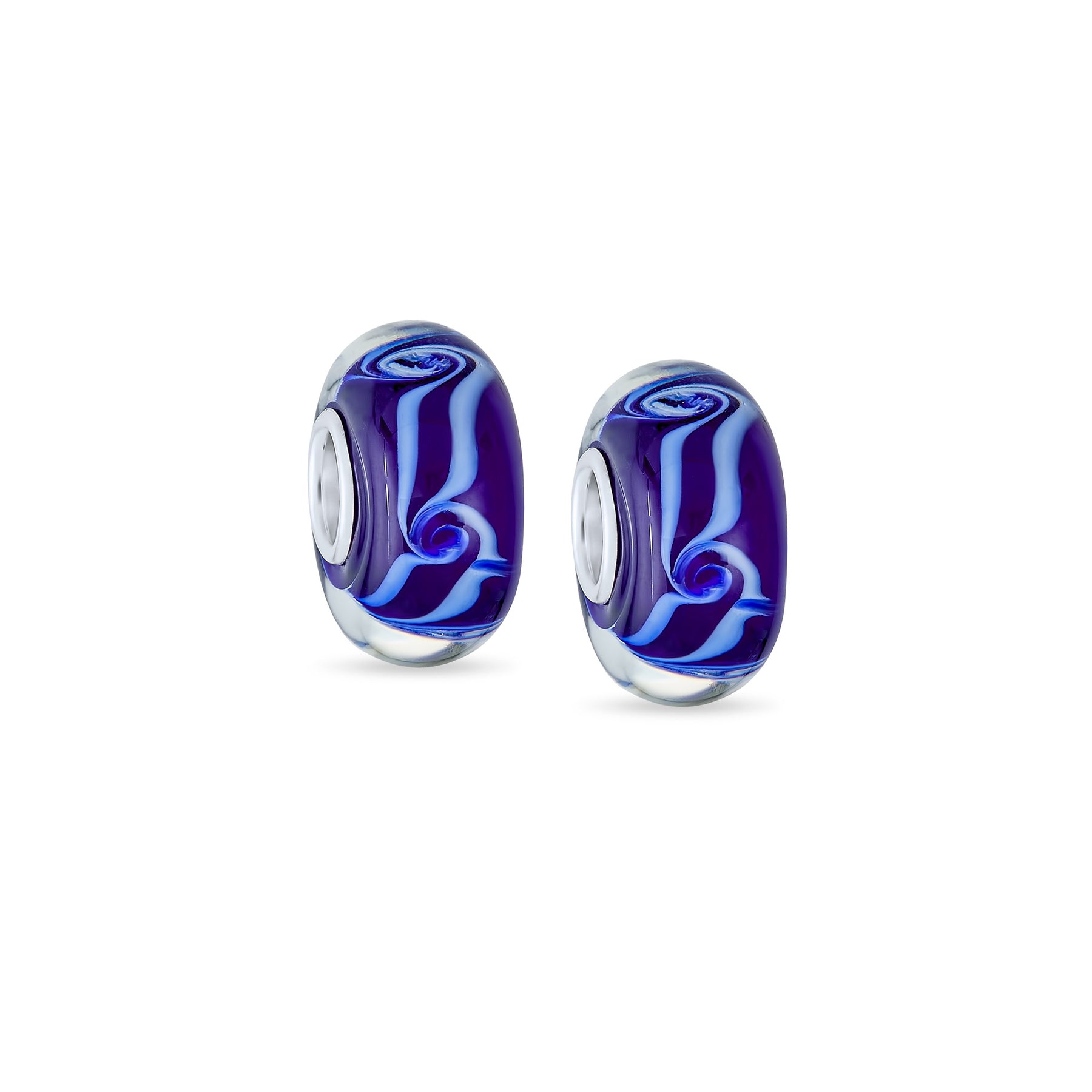 - Enhance your collection with this navy blue glass bead. Featuring a swirl pattern, it's perfect for any jewelry piece. Made from .925 sterling silver and Murano glass, it pairs beautifully with other beads. Ideal for holidays or special occasions. Order your blue glass bead today. Bead Core 5mm.