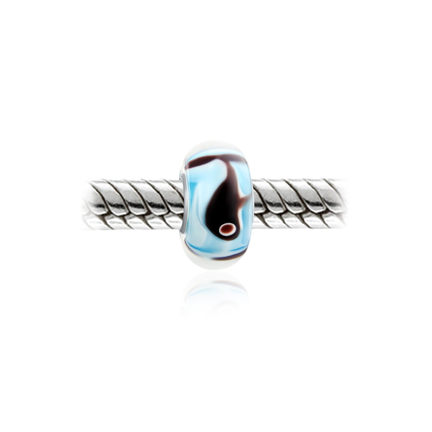 - Dont miss out on the perfect gift for lovers of oceanic creatures with this sterling silver and blue Murano glass charm. Its cartoon killer whale animal design will be sure to add whimsy and charm to your nautical - themed bead story.