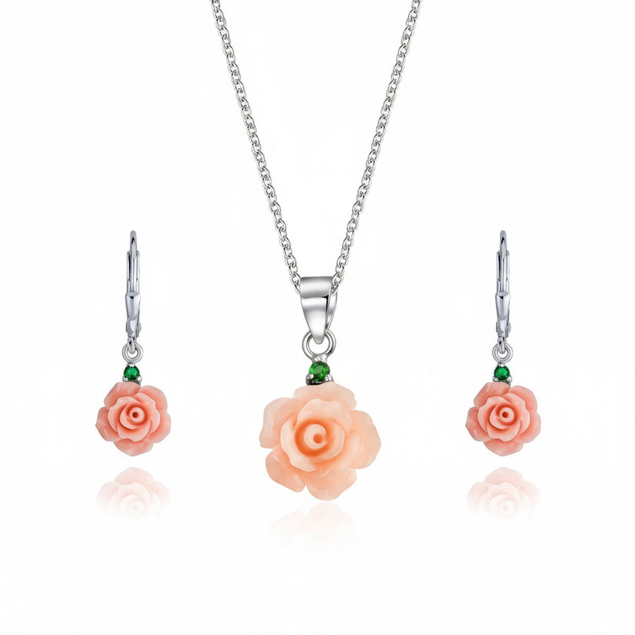 • FLORAL JEWELRY SET – Celebrate year-round blooms with this charming sterling silver set featuring a 0.79-inch pink resin rose pendant necklace on an 18-inch chain with a simulated emerald leaf, paired with matching lightweight lever back dangle earrings accented with green CZ details. Perfect for adding feminine charm, a fresh spring vibe, and a pop of color to any outfit, this set makes an ideal gift for May birthdays or floral jewelry lovers.