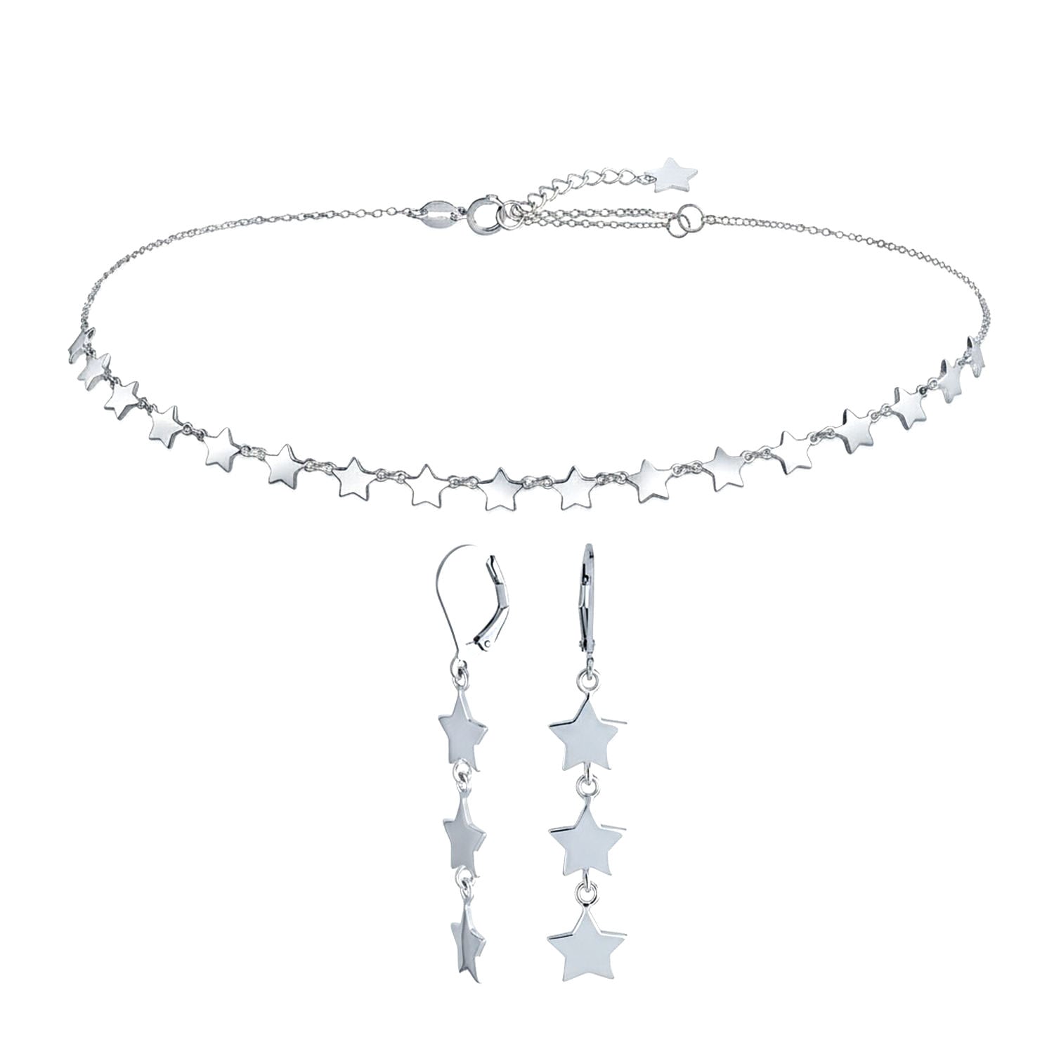 • Shine like a superstar with this sterling silver set featuring a multi-star choker necklace and matching star-themed earrings
