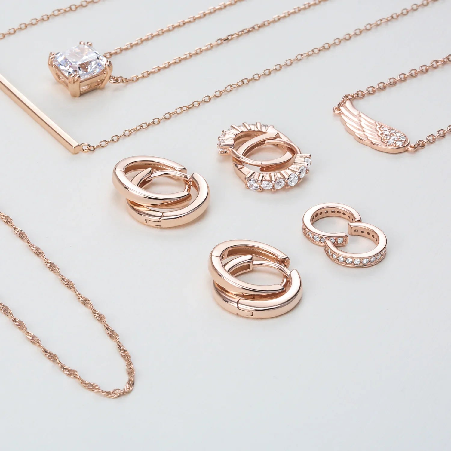 • Elevate your style with our 0.5-inch mini rose gold plated silver huggie hoop earrings, perfect for any outfit. Featuring a polished, sleek design, this versatile unisex set is a must-have accessory.