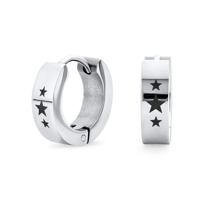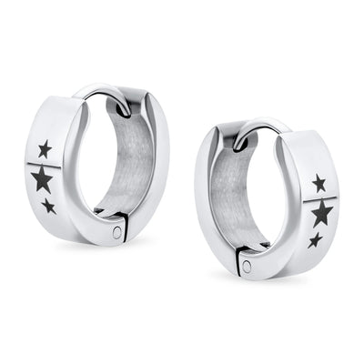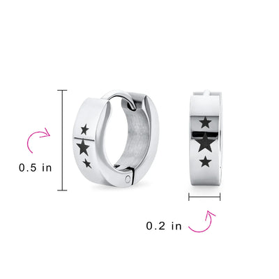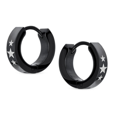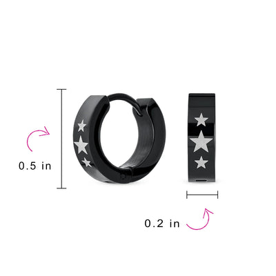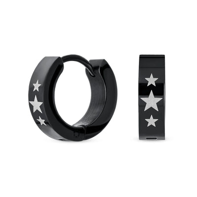 Mens Earrings Black IP Stainless Steel Biker Jewelry USA Stars Hoop Huggie