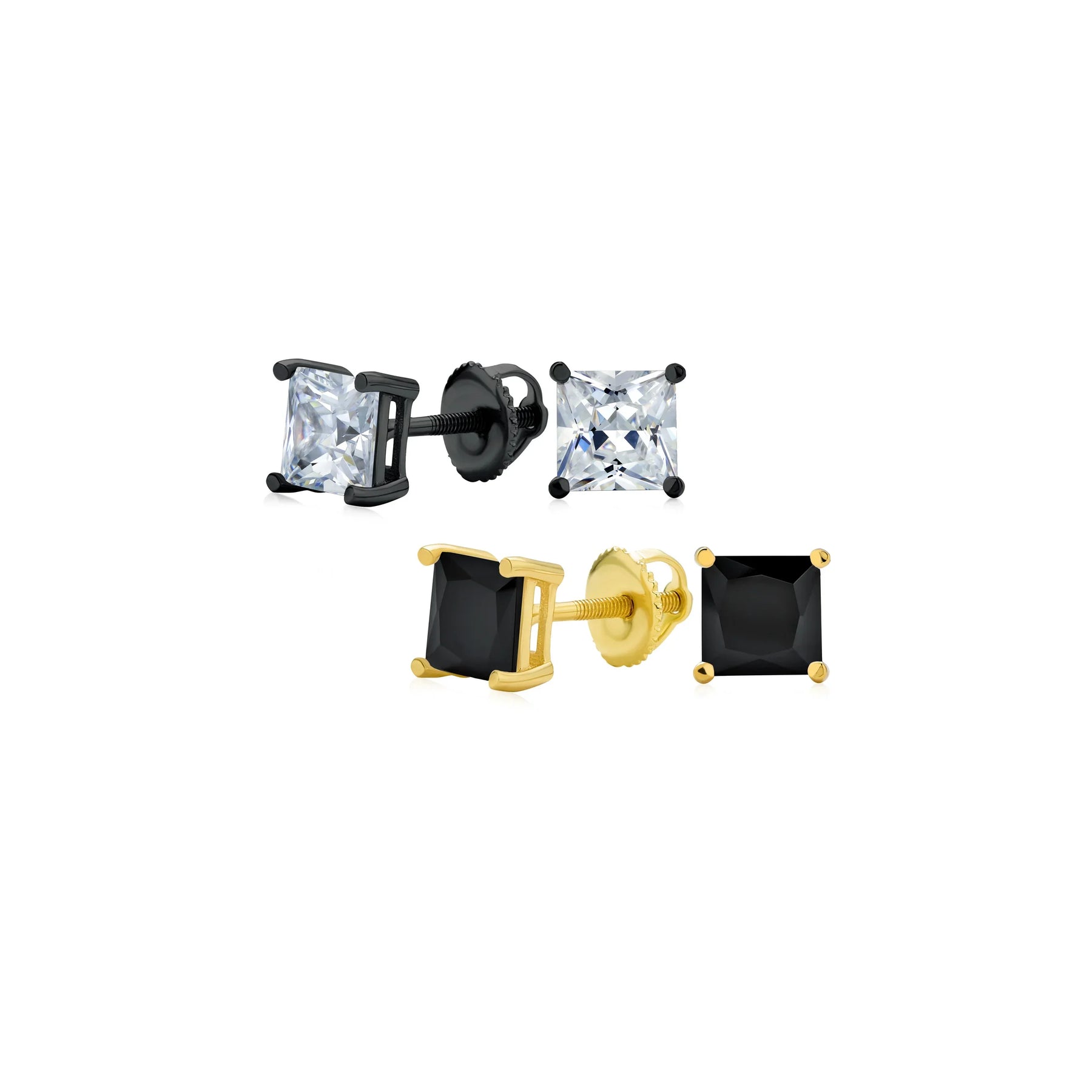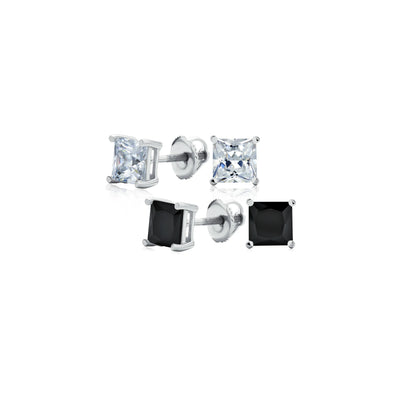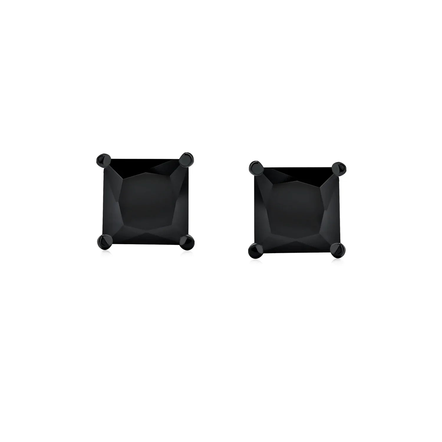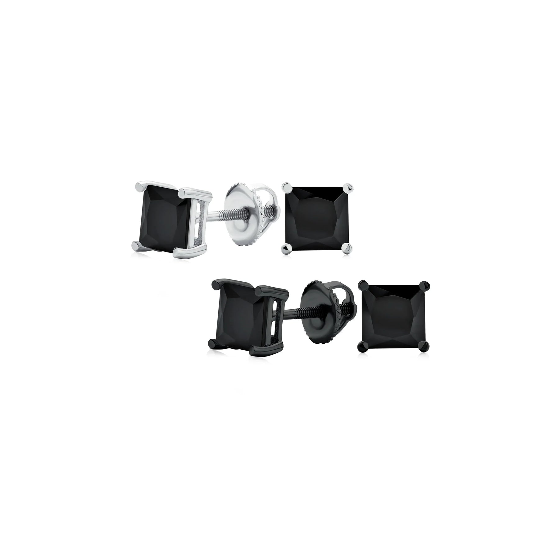 - Modern and sophisticated, these unisex black stud earrings offer a safe and comfortable fit. Chic black Simulated Onyx stud earrings are versatile and pair with any outfit. Black rhodium plated sterling silver screw back post ensures security. Sophisticated square Simulated Onyx CZ gemstones create a sleek, polished look. Show your style subtly with these fabulous earrings. Perfect for yourself or as a gift for someone you love.