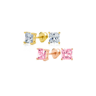 - ELEGANT DESIGN - Square brilliant-cut CZ set in gold-plated silver. These stud earrings effortlessly complement any outfit and feature secure screw backings for pierced ears, ensuring they stay in place all night.
