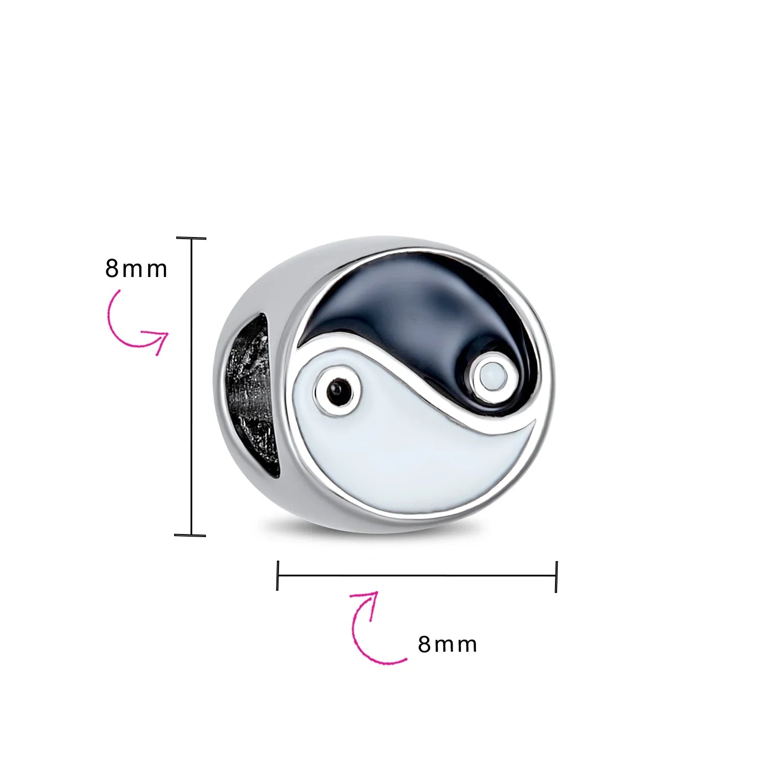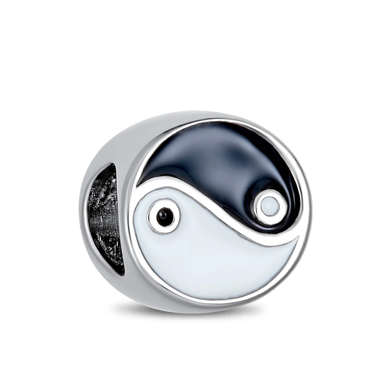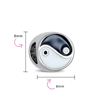 - Embrace balance and beauty with this sterling silver yin yang bead. This chic charm symbolizes nature's harmony in a timeless motif. Add spiritual bliss to your bracelet with these sterling silver charms. A perfect gift, this black and white charm is sure to impress.