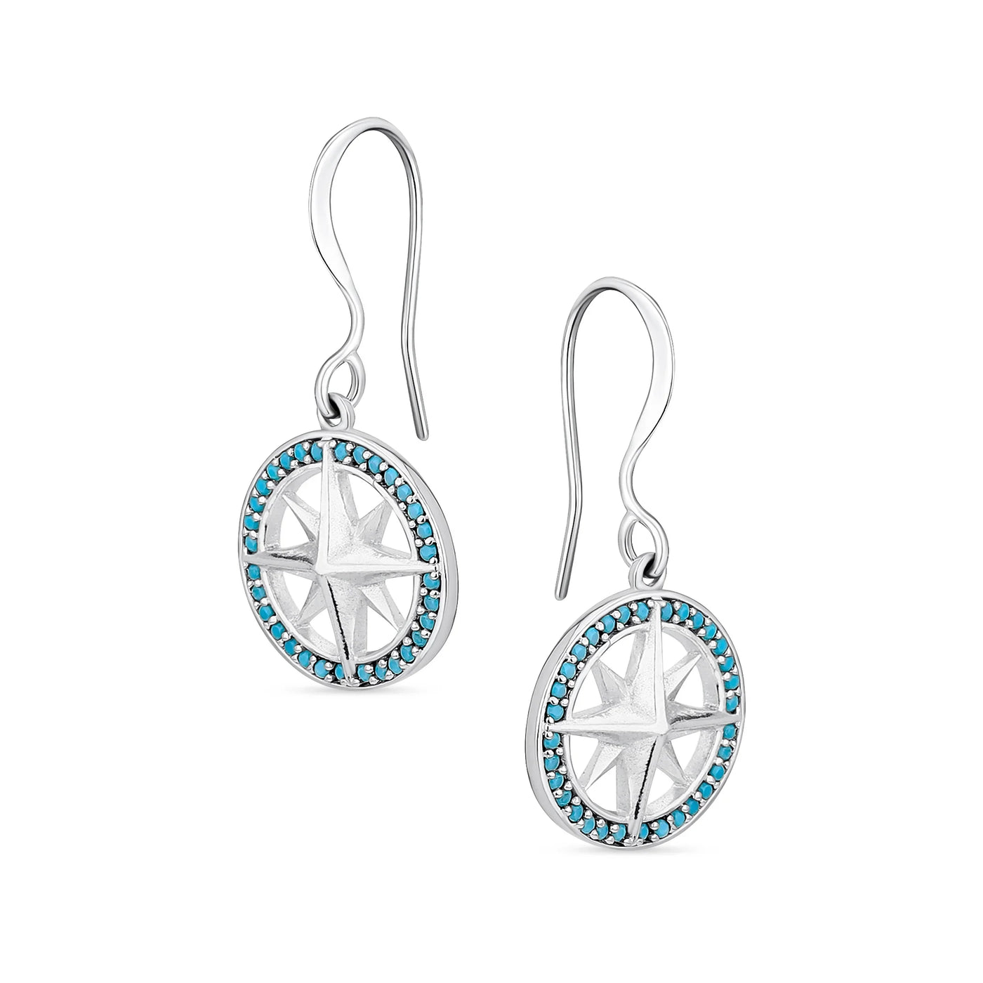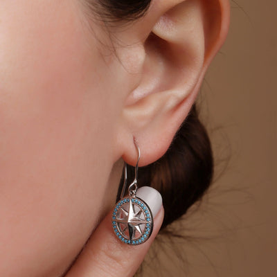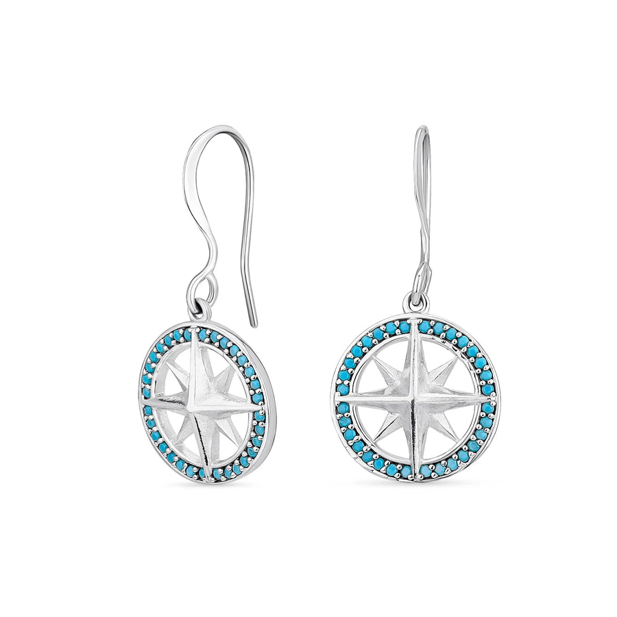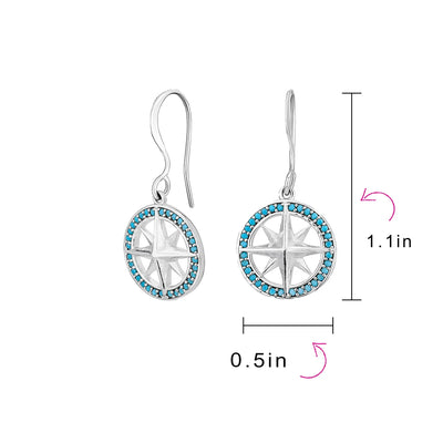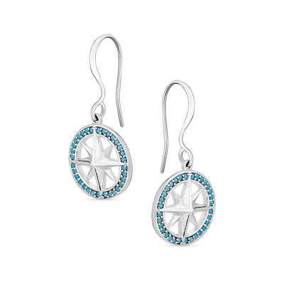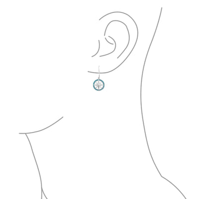 Unisex Viking Disc Medallion Dangle Earrings Blue Enamel Sterling Silver Compass - Bling Jewelry