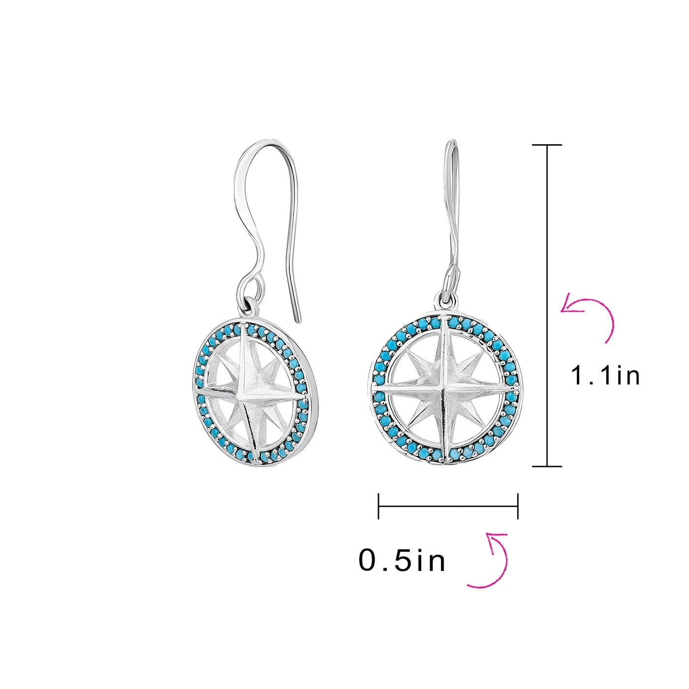 Unisex Viking Disc Medallion Dangle Earrings Blue Enamel Sterling Silver Compass